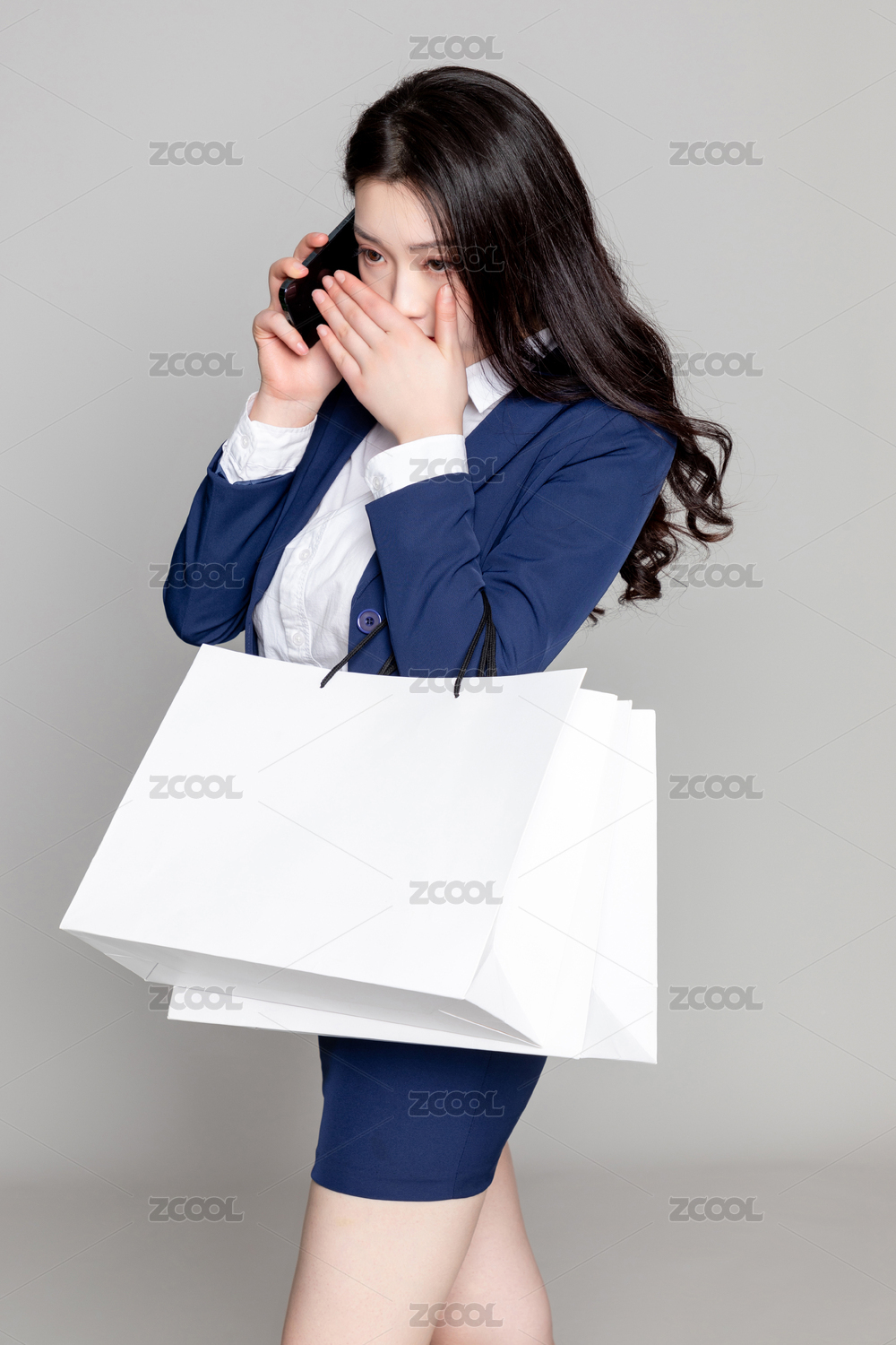 灰色背景里的亚洲商务女性