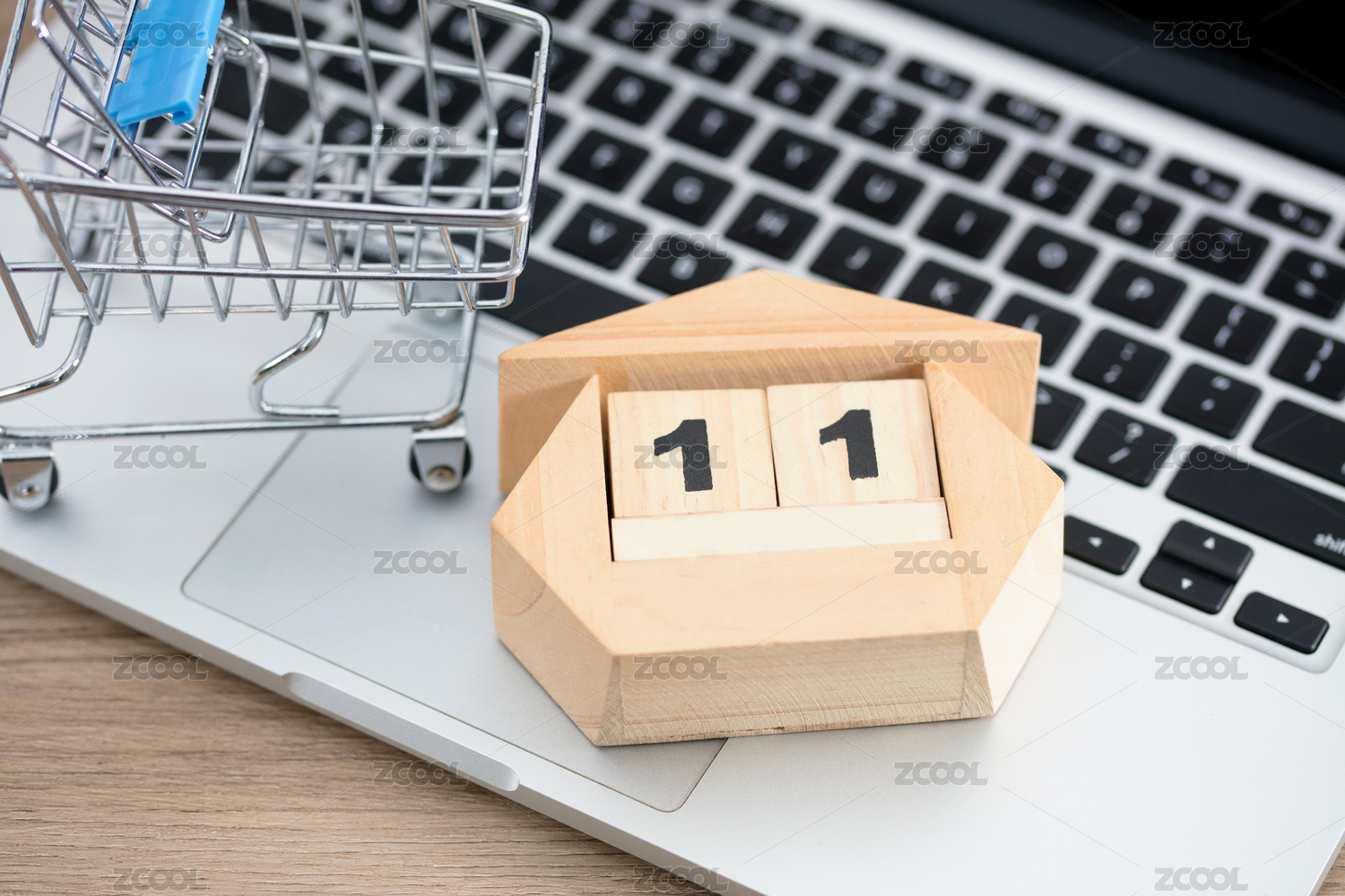 空空的购物车模型和显示着11的台历在笔记