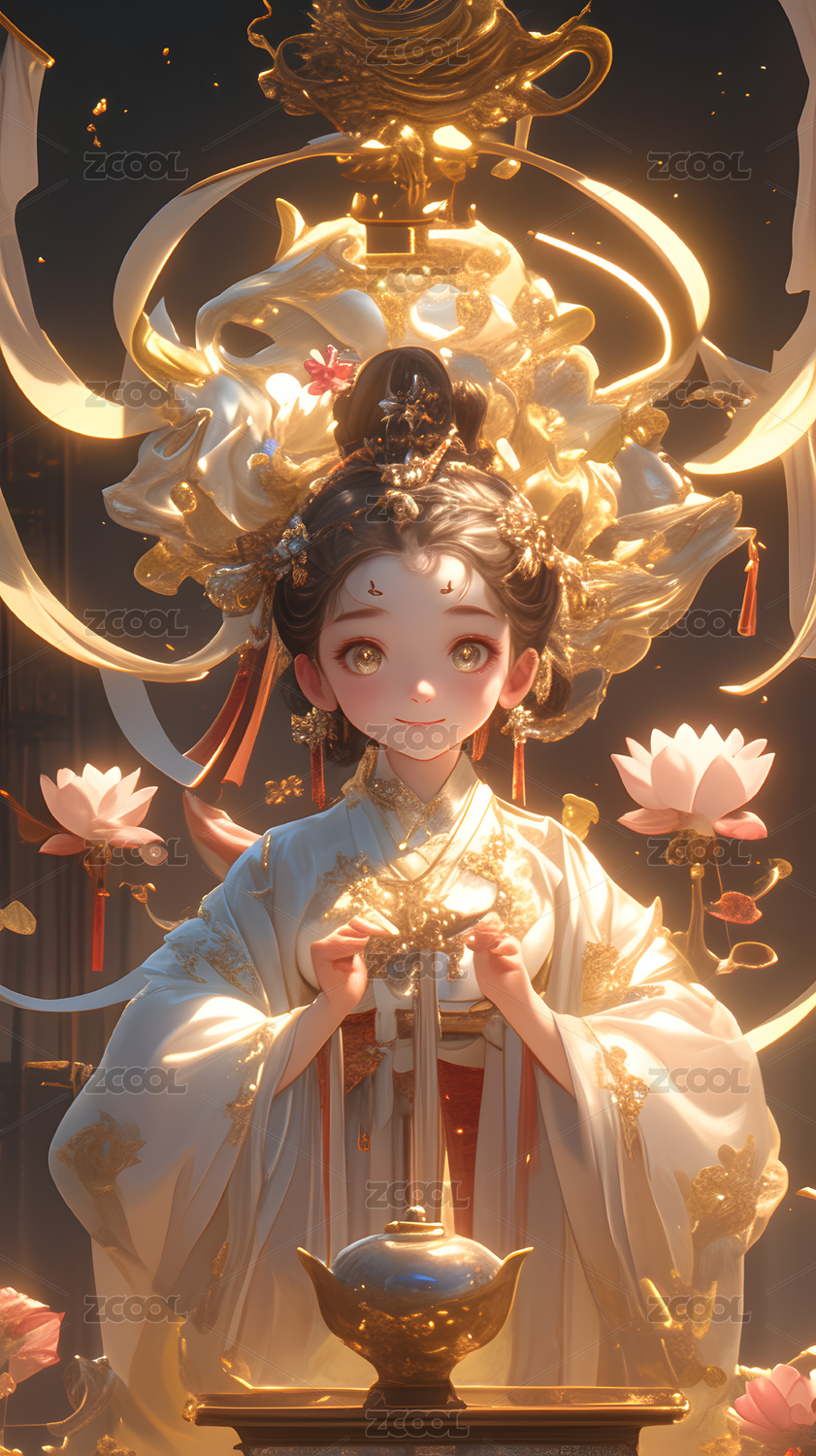 AIGC202403,中秋,月亮,玉兔,兔子,嫦娥,插画,原画,厚涂,花