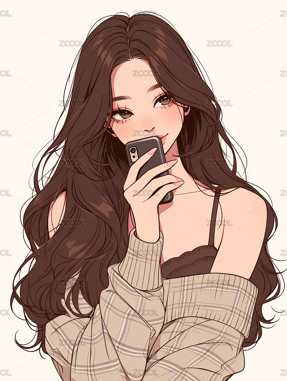 拿着手机的长发女孩
