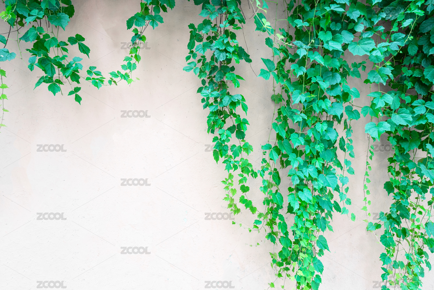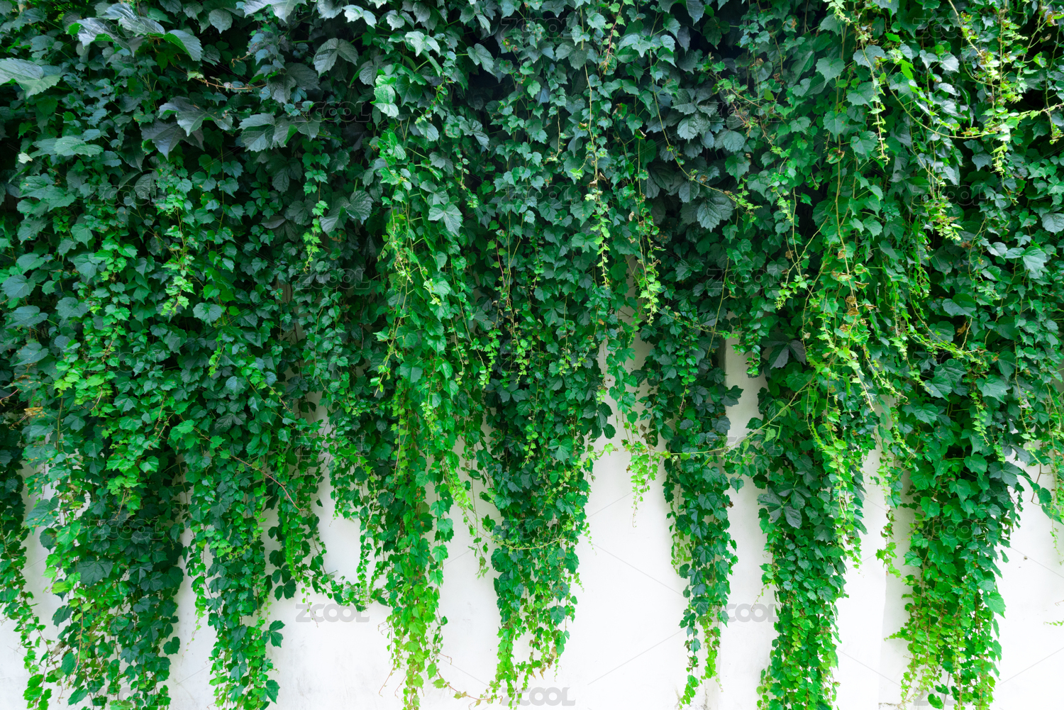 白色墙壁上爬满的绿植