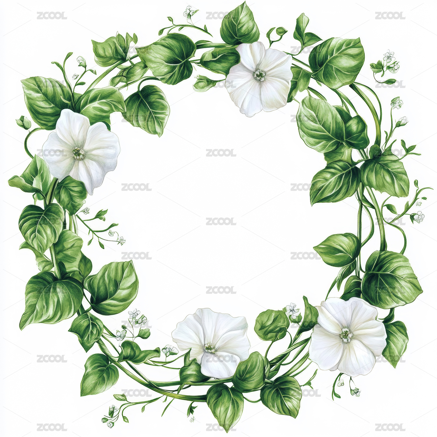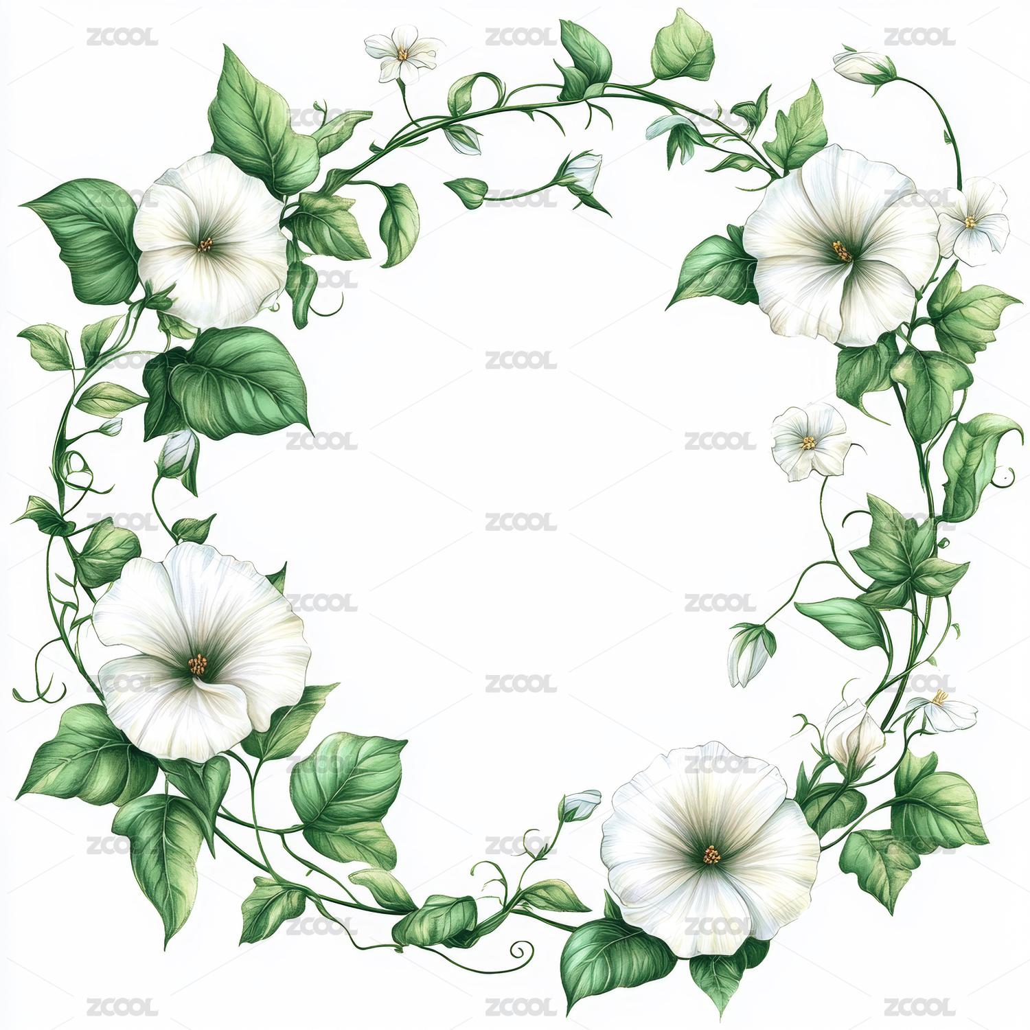 水彩风牵牛花藤蔓