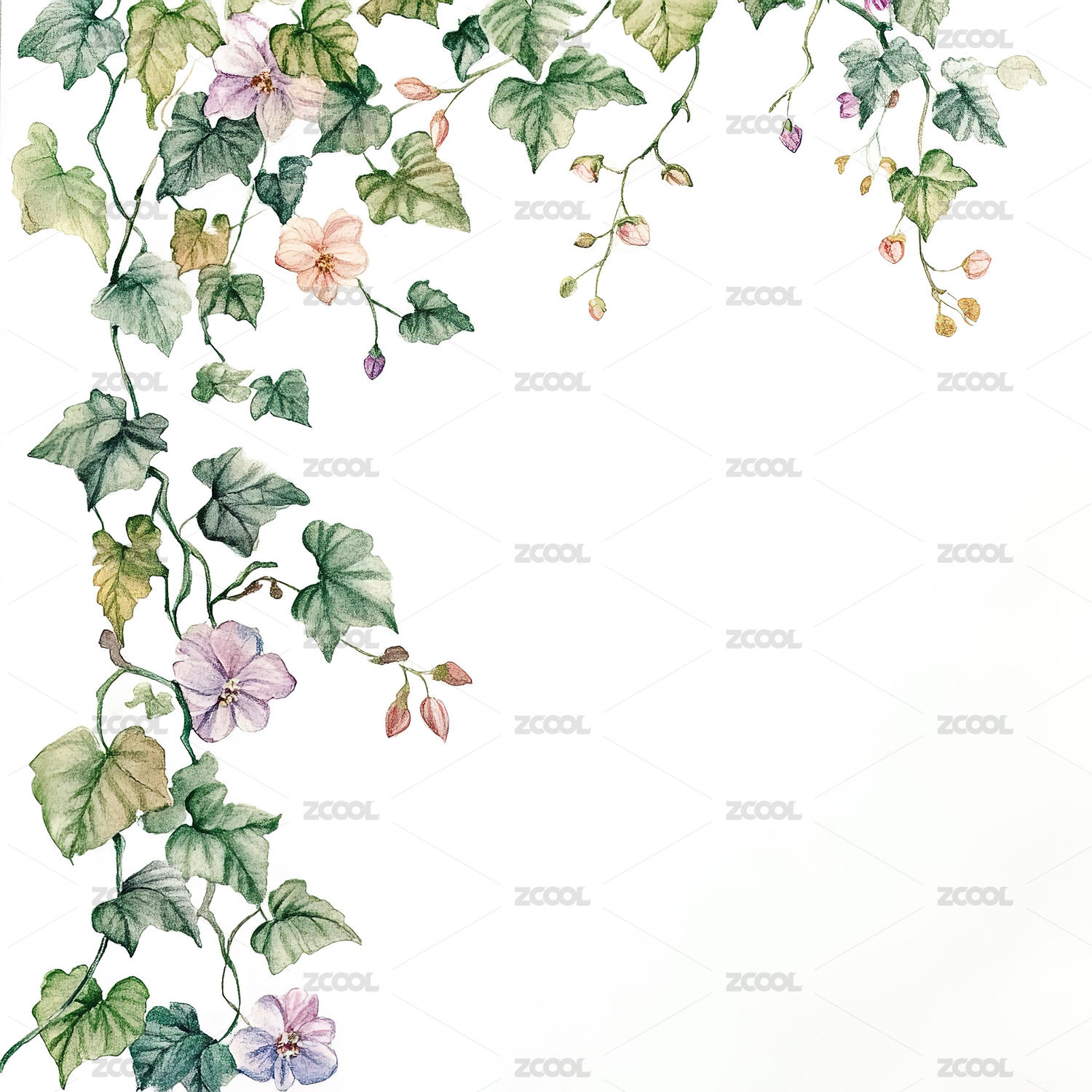 优雅绿色藤蔓与粉色花朵角落装饰