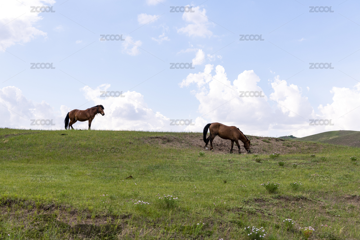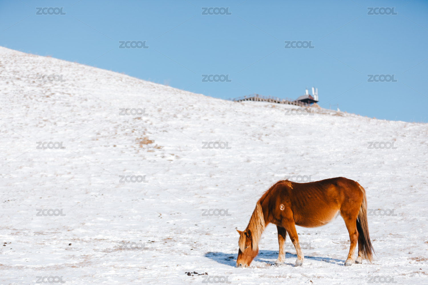 冬日在覆盖着白雪的乌兰布统草原上的骏马