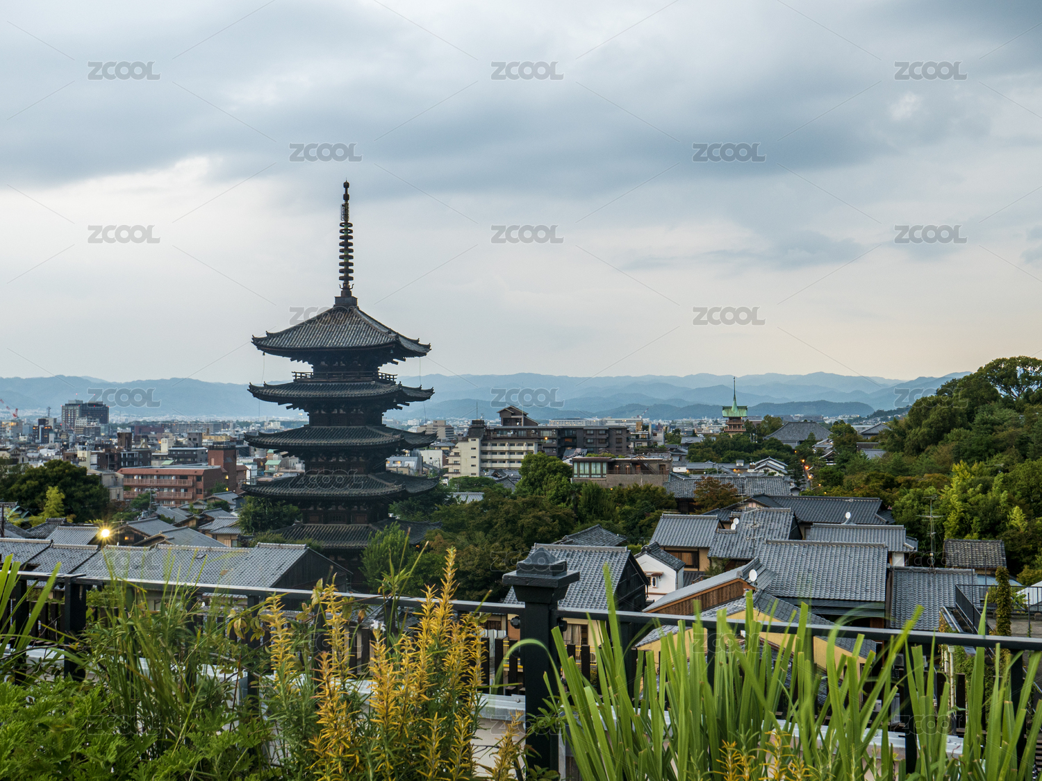 黄昏日落时,日本奈良若草山上俯瞰城市全景