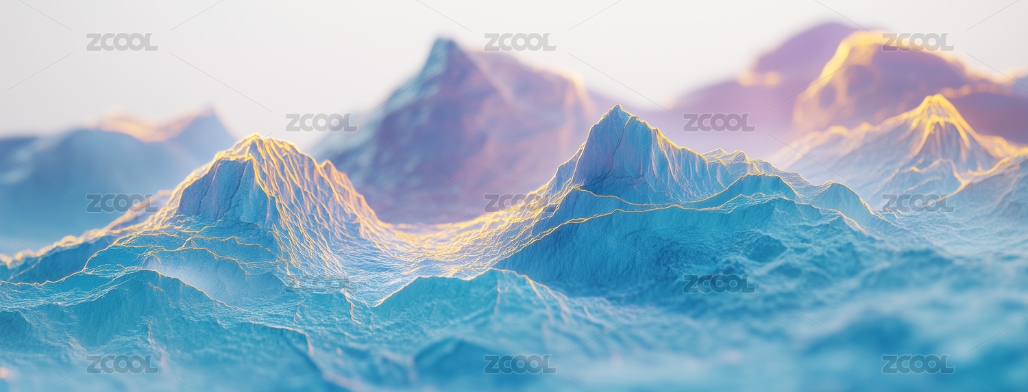 3D渲染山丘山脉高山大山山峰数字艺术插画