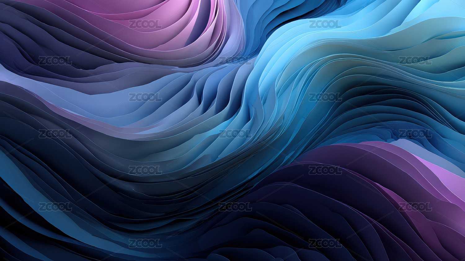 数码粉紫色渐变层叠波浪抽象图形海报背景
