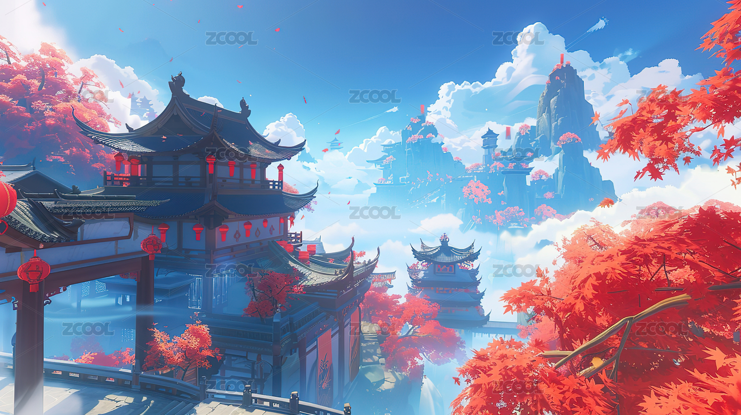 AIGCTP2024,春节,中国,亚洲,城市,灯笼,灯光,卡通,光线,金色