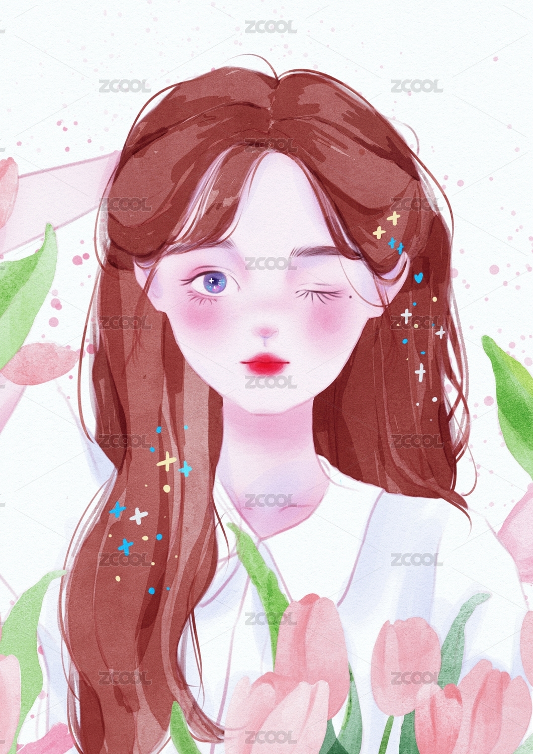 清新治愈系玫瑰花可爱少女人物 板绘仿水彩