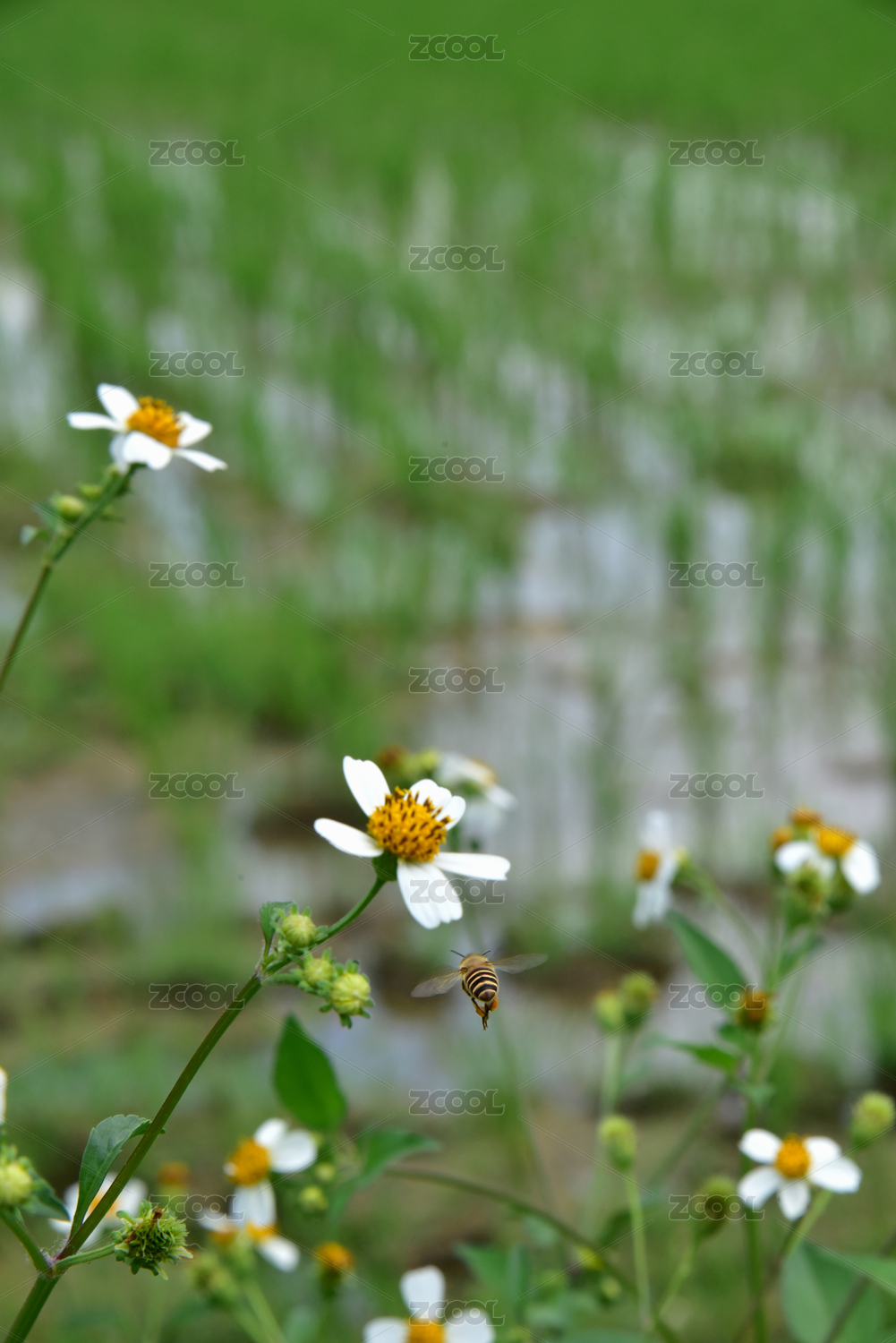 白花鬼针草,野花,花卉,植物,蜜蜂,昆虫,采蜜,开花,绽放,自然