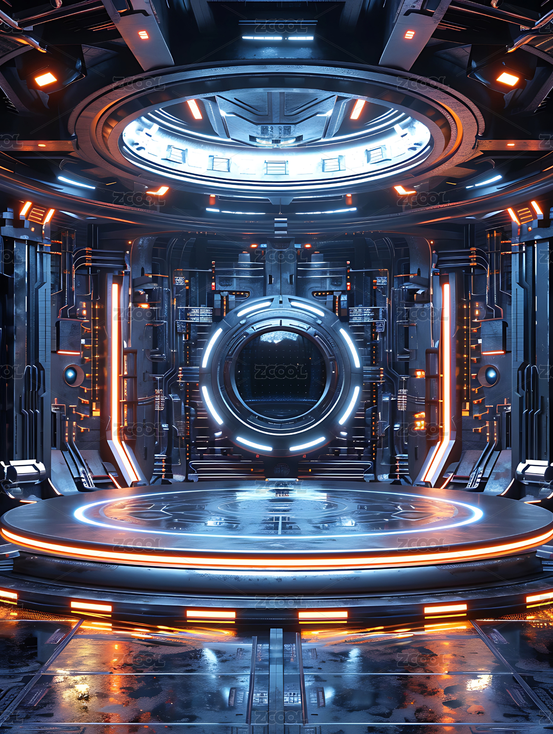 深色的科幻空间太空仓内部