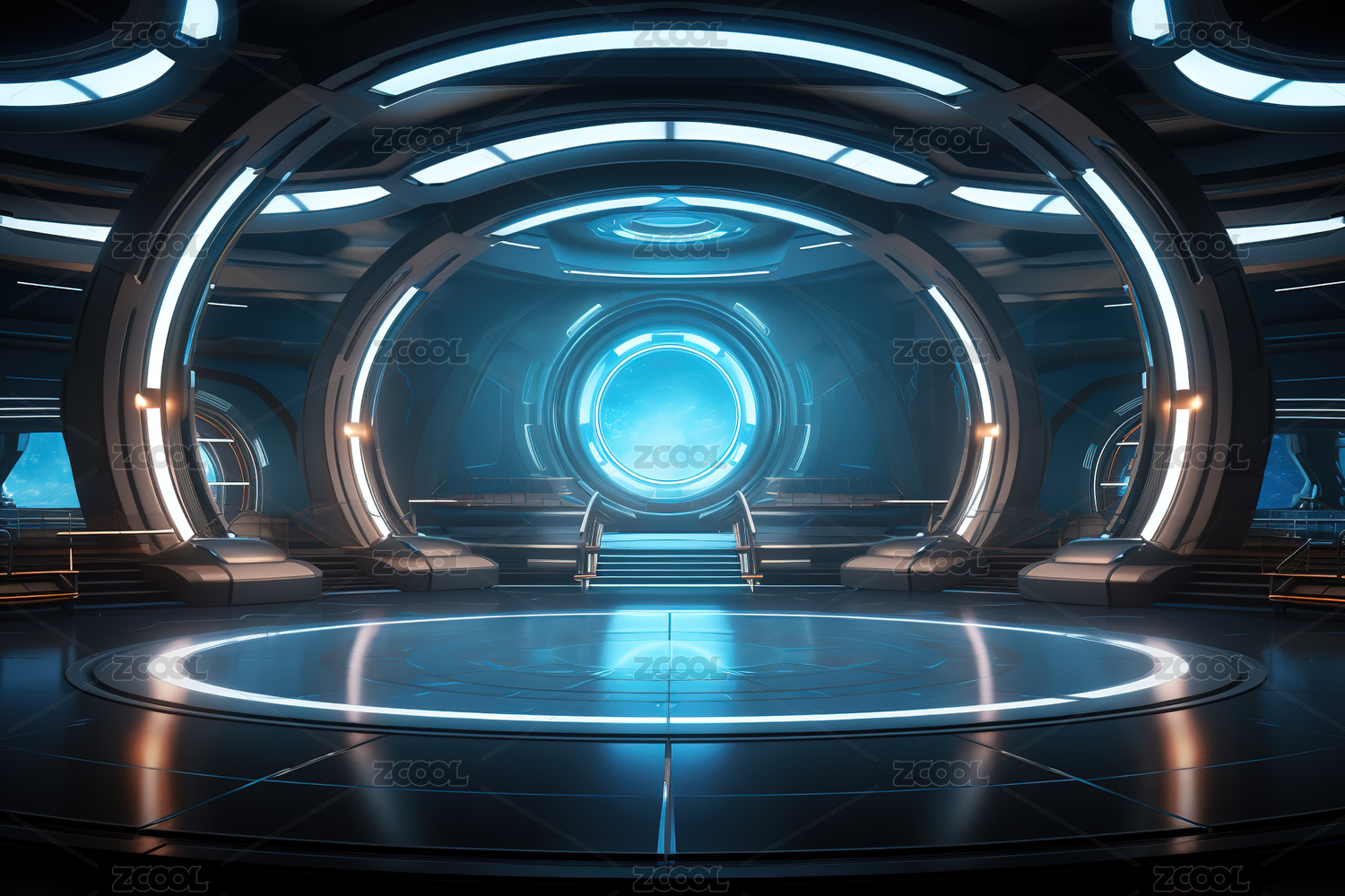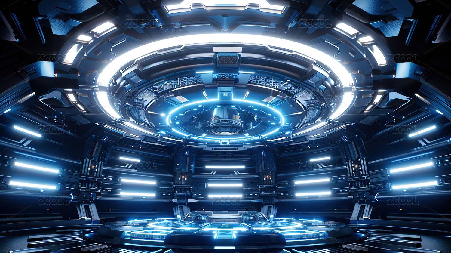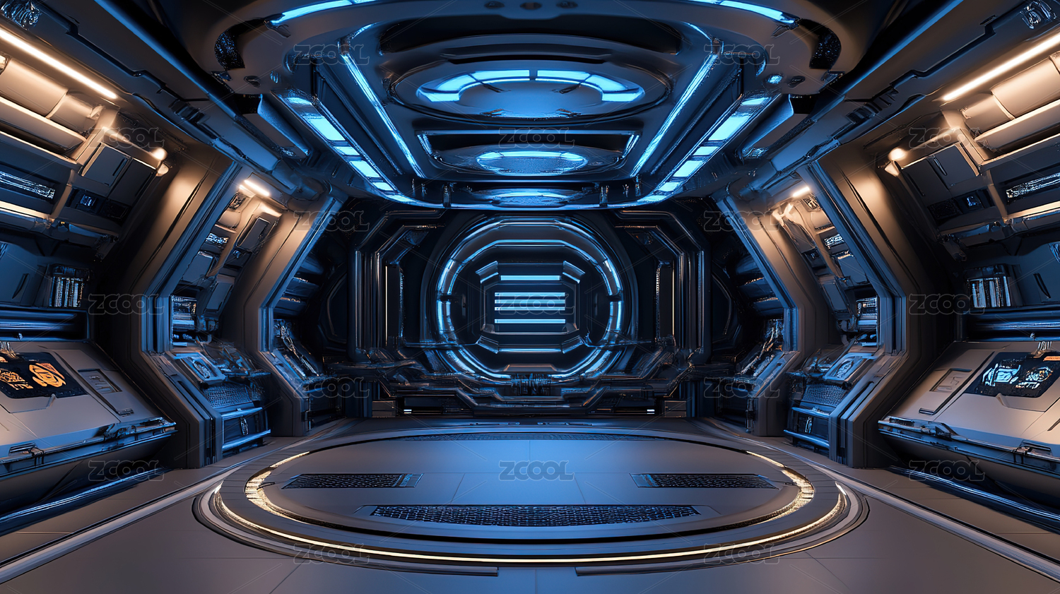 蓝色科幻空间太空仓内部