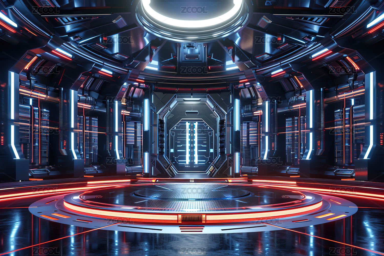 3D渲染科幻太空舱室内空间背景