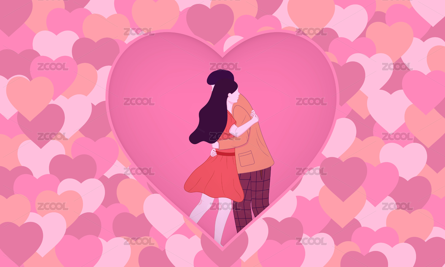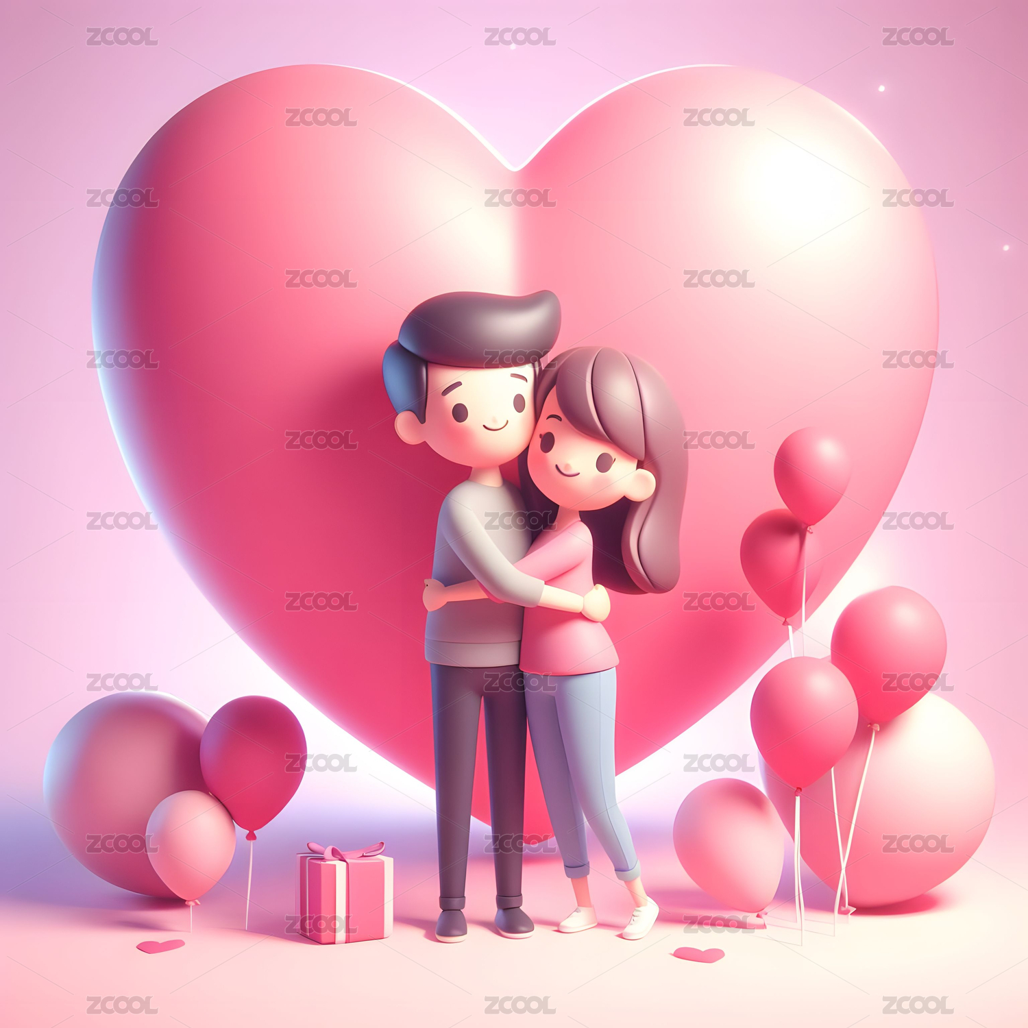 情人节爱心和一对相拥的情侣