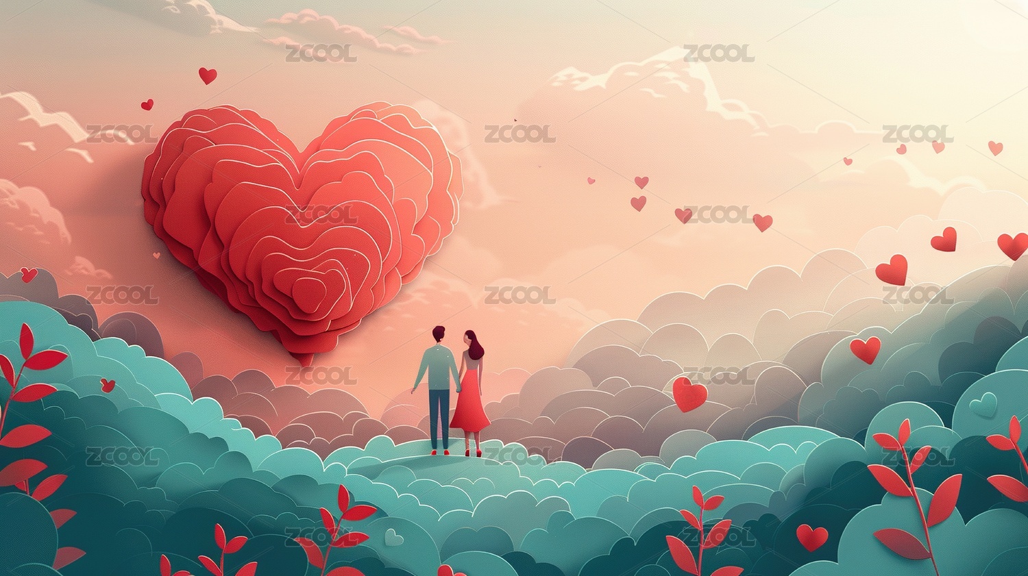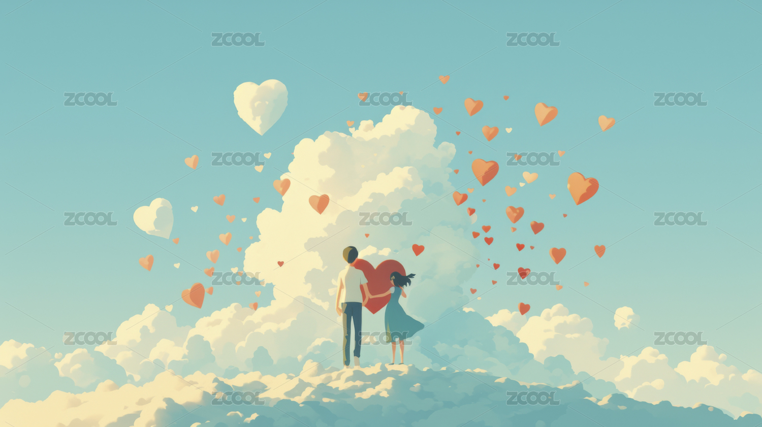 云端情侣爱心飞舞浪漫氛围
