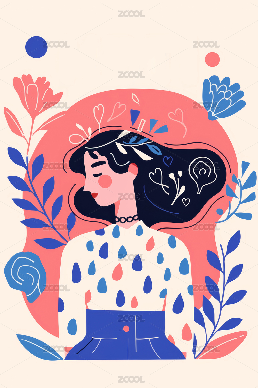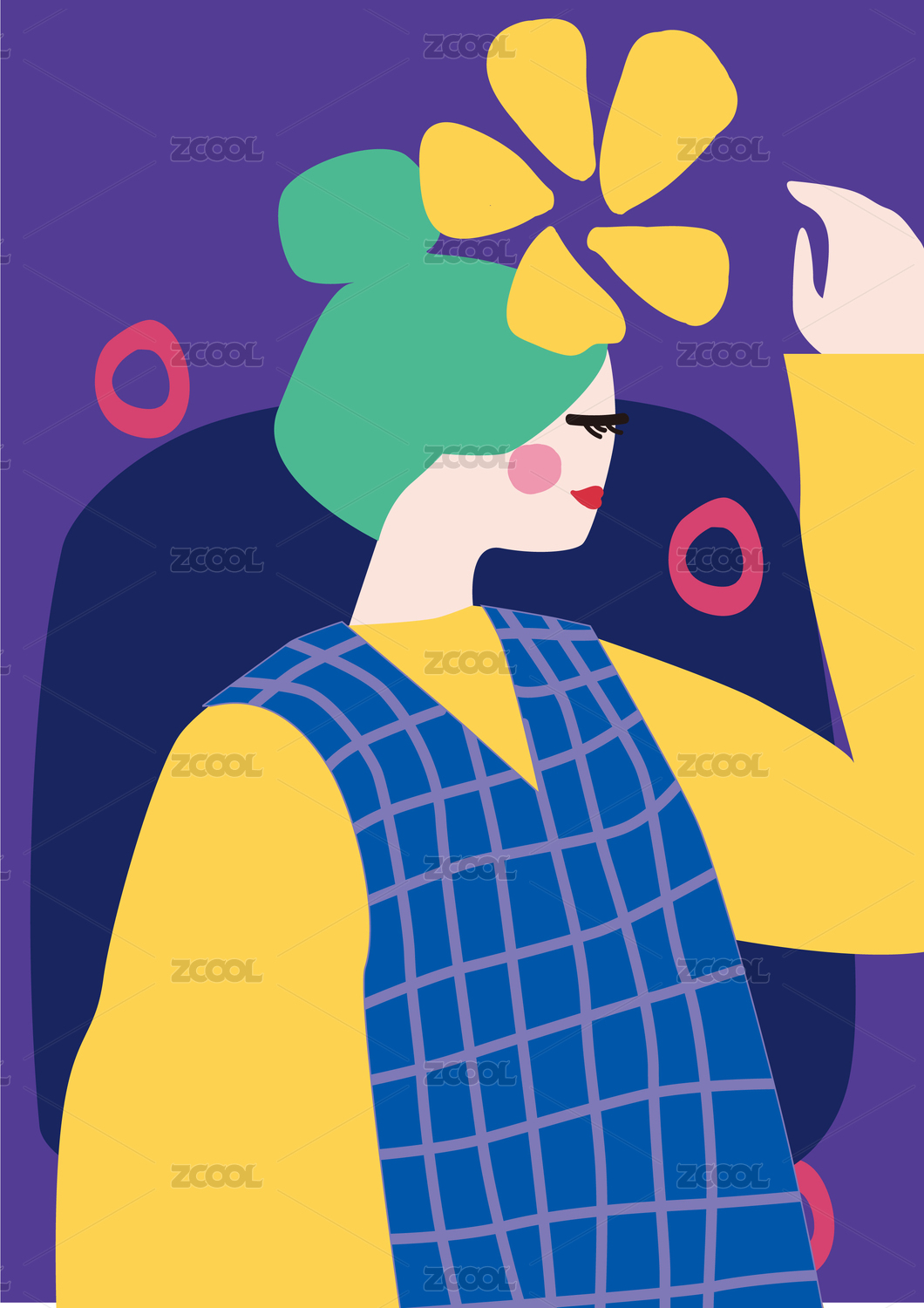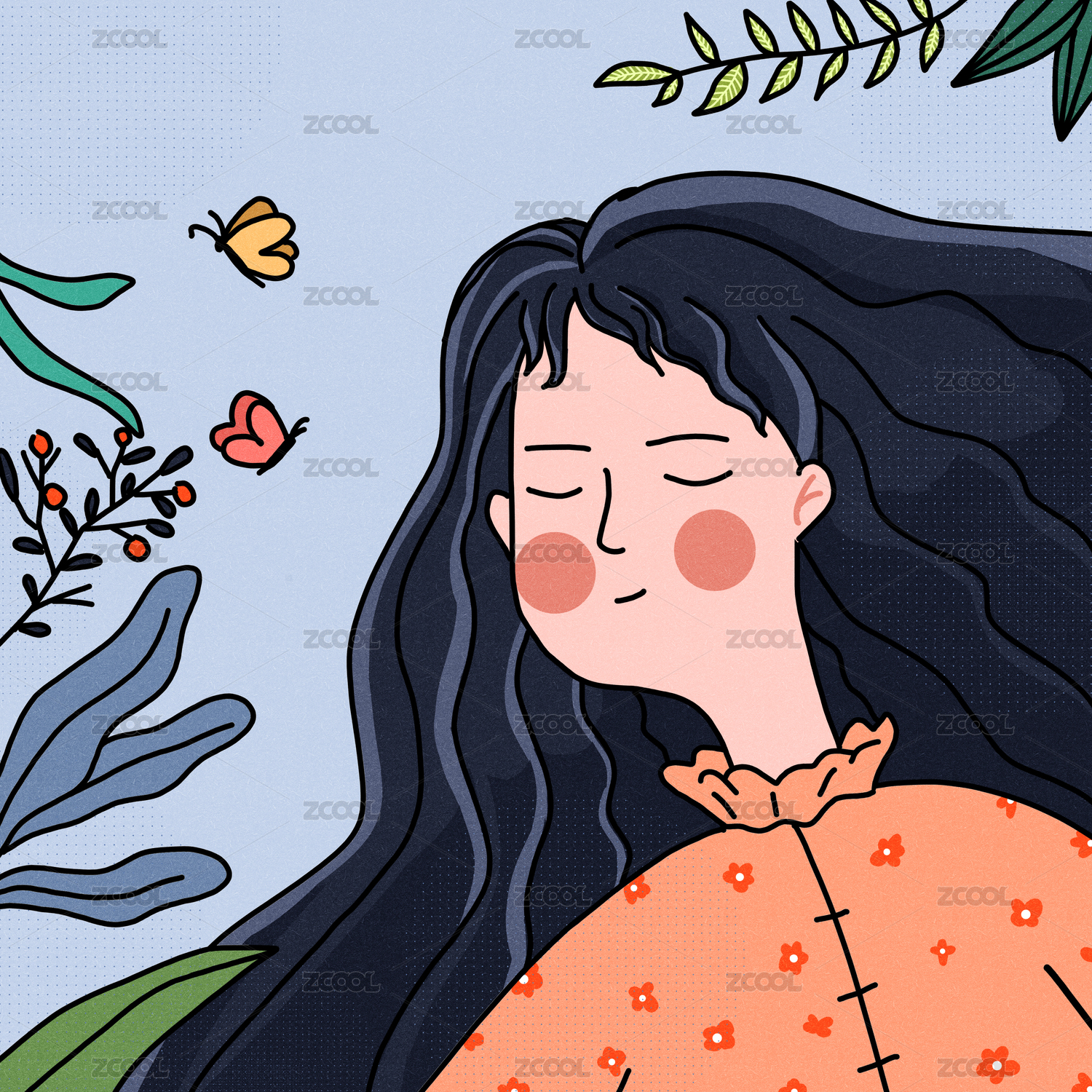 女孩,懒,简约,扁平,图片,配图,插画,休闲,生活,假期