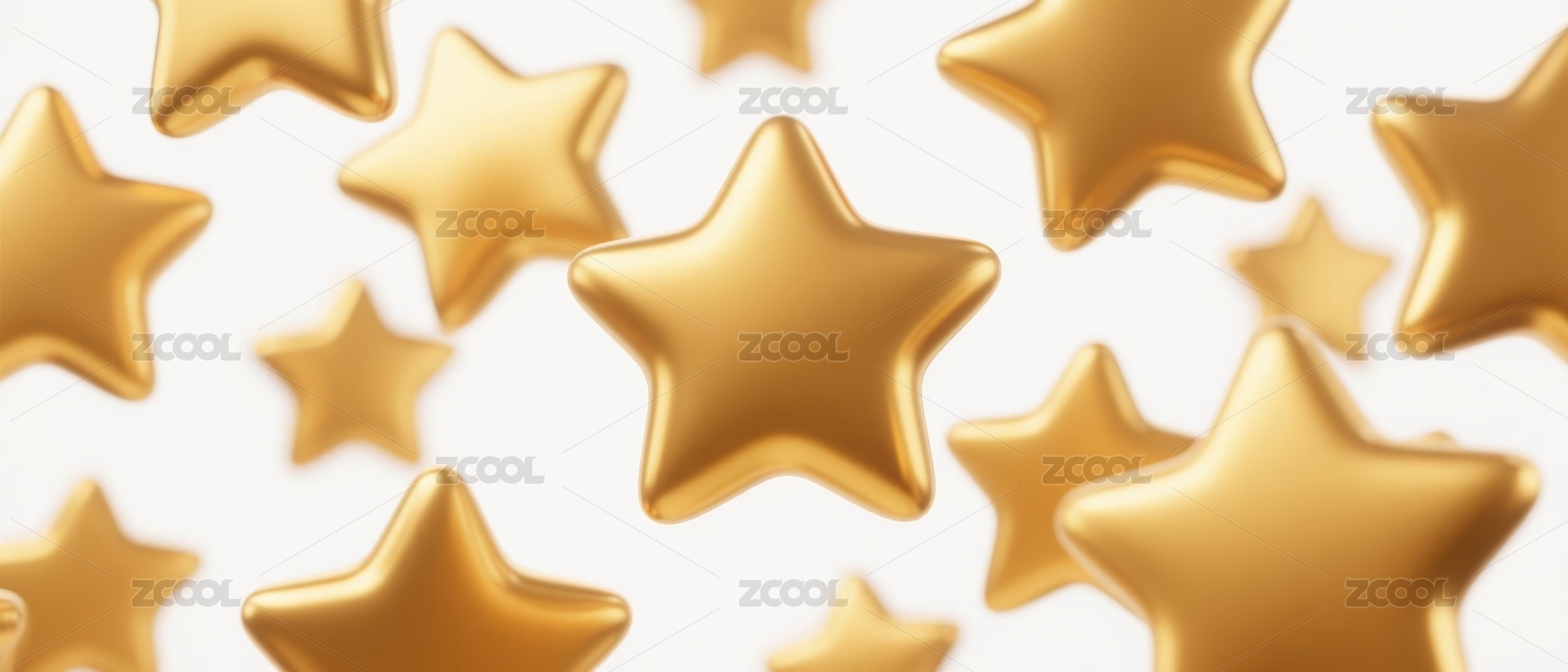 金色装饰五角星三维渲染