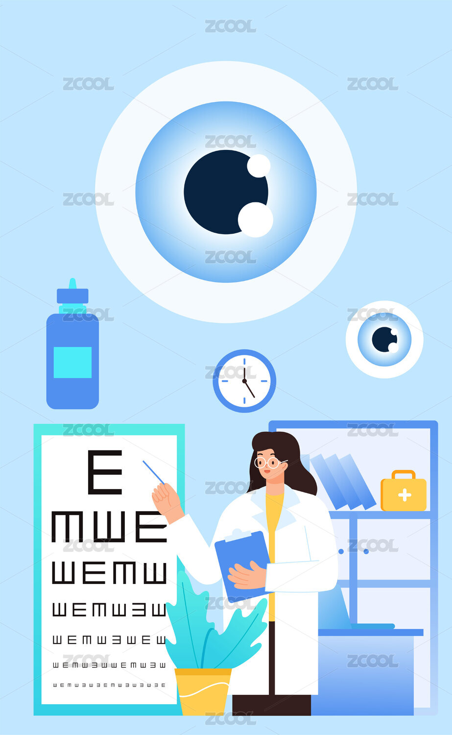 视力检测近视眼预防矢量分层插画
