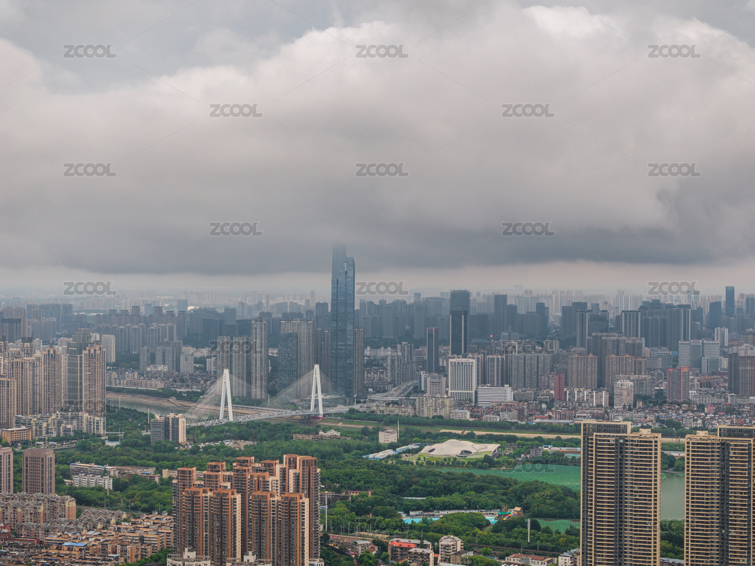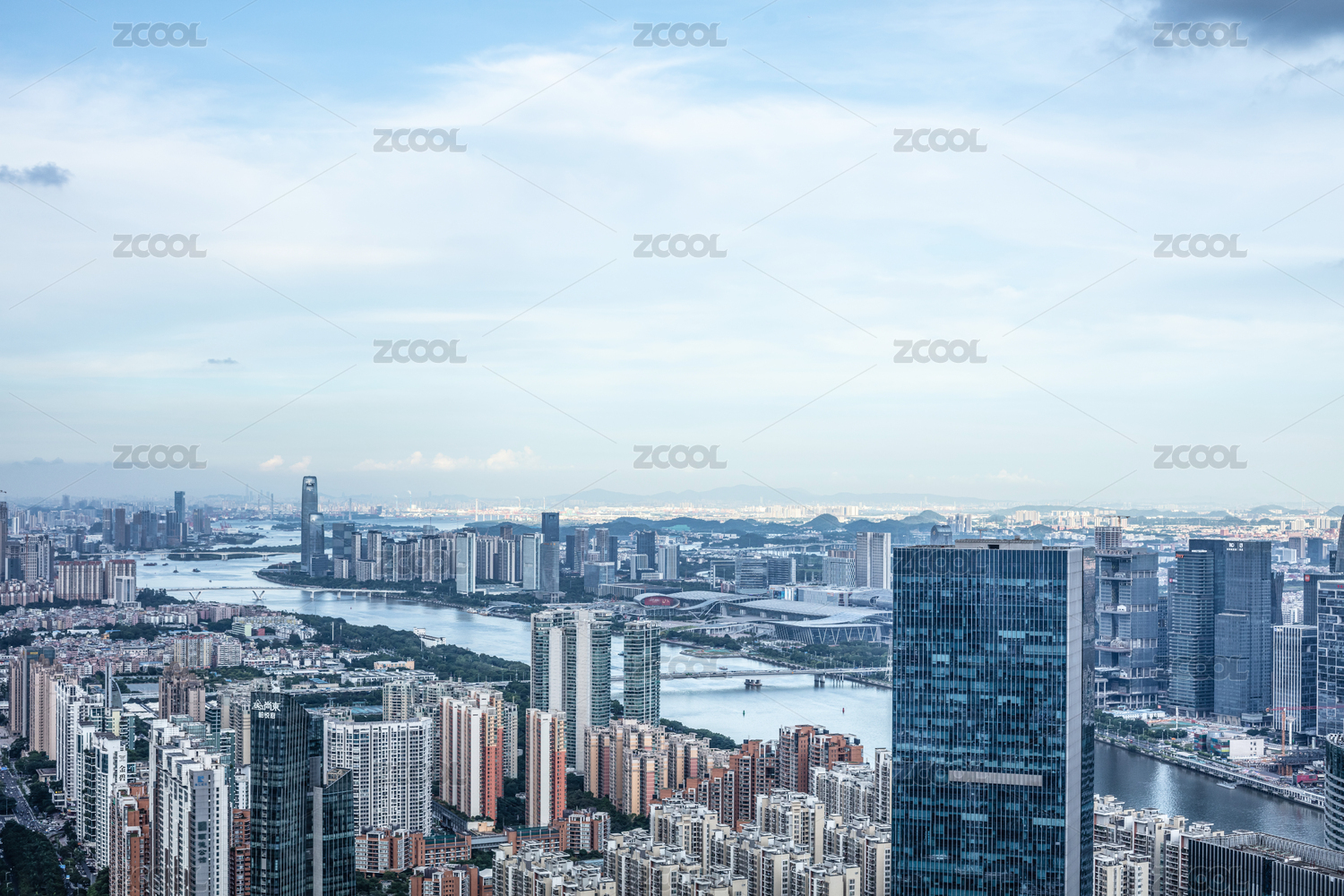 中国广州鹤洞大桥和城市天际线黄昏风光