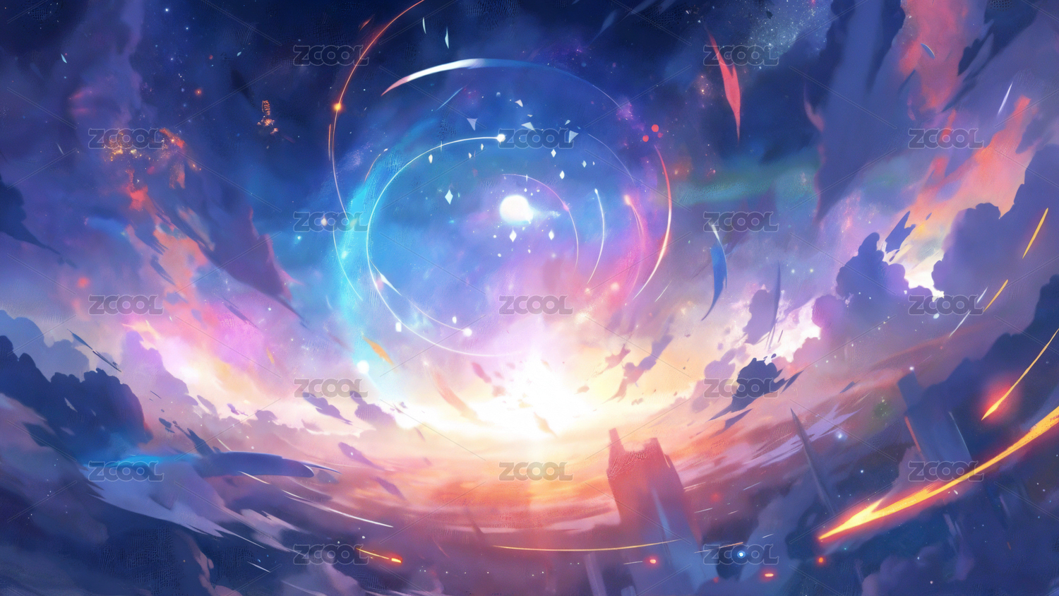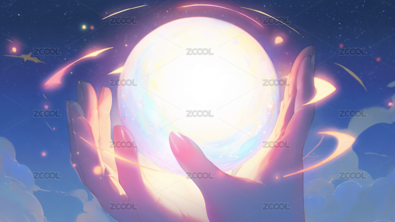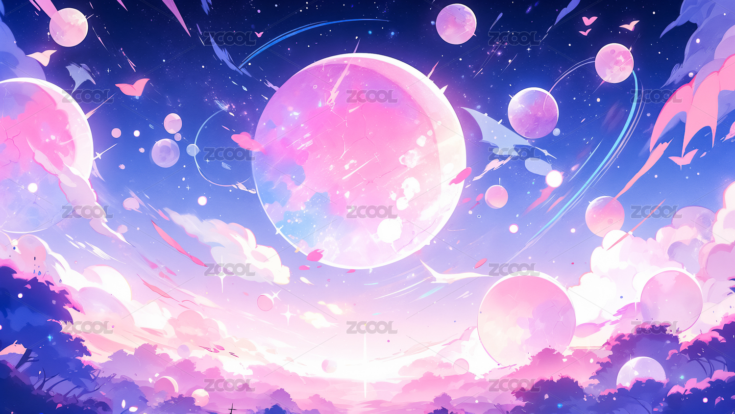 手绘唯美的抽象艺术感夜晚天空风景插画