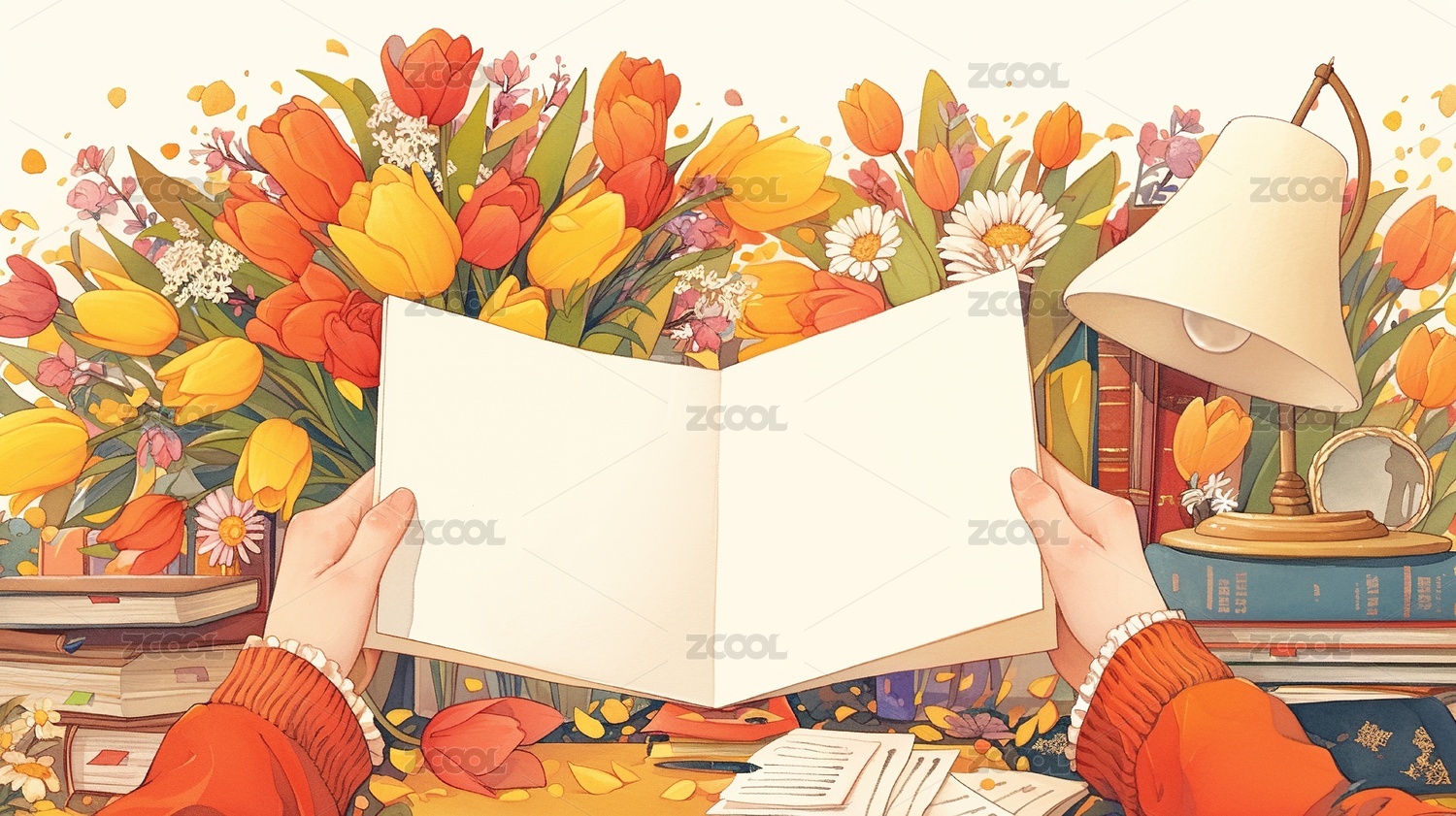 秋天,留白,设计,手,贺卡,教师节,礼物,妇女节,鲜花,郁金香