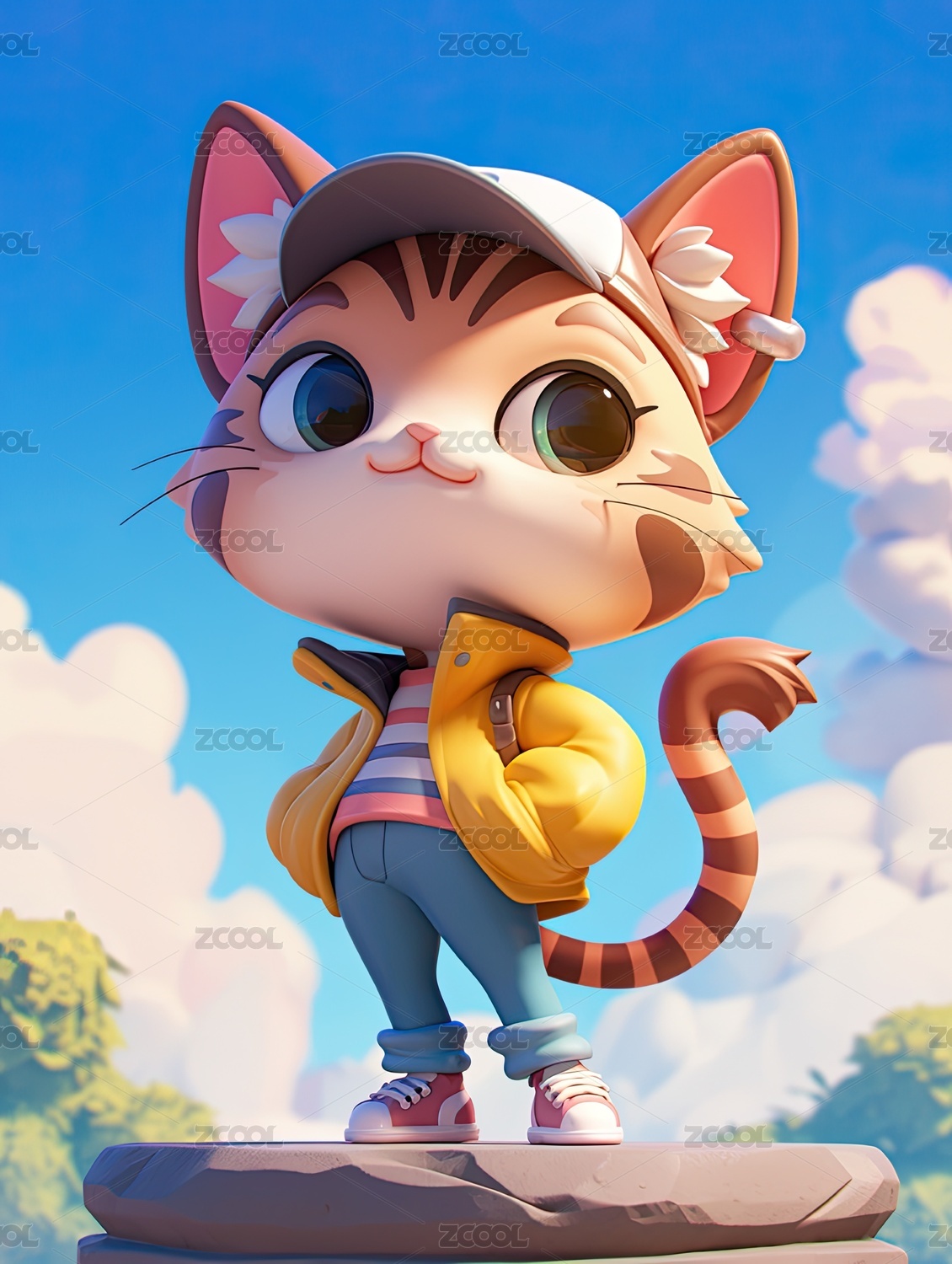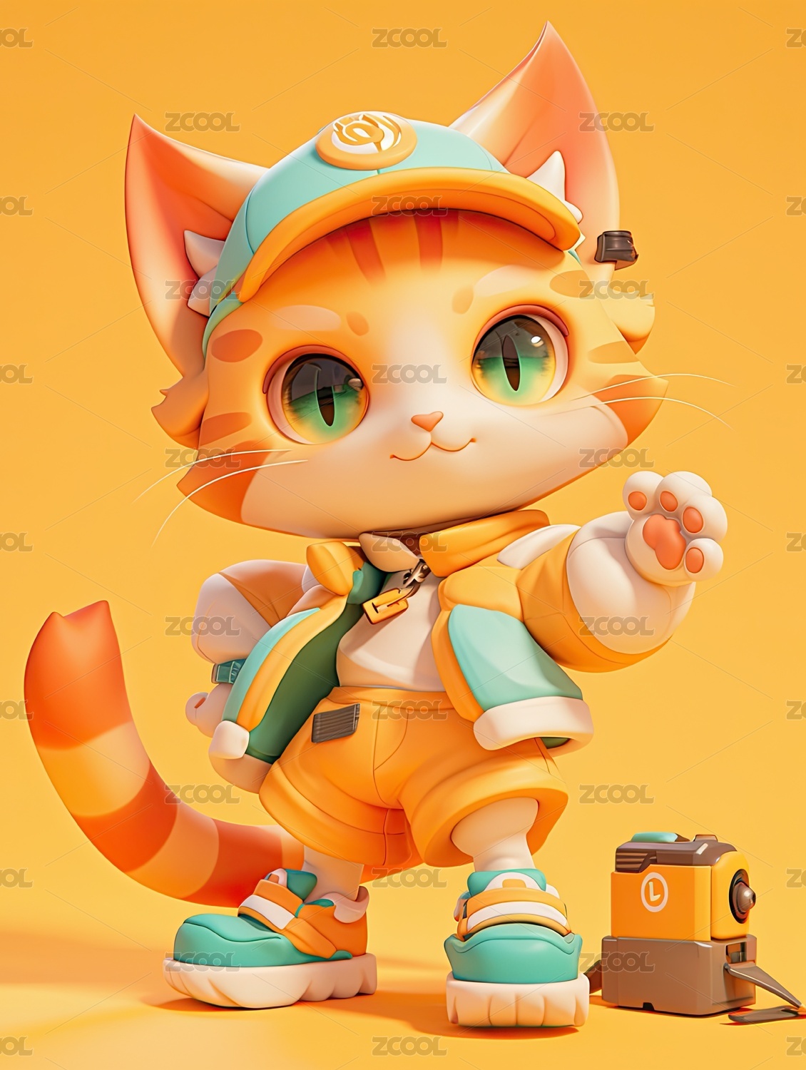 动物,可爱的,插画,三维,3D,时尚,潮流,猫,猫咪