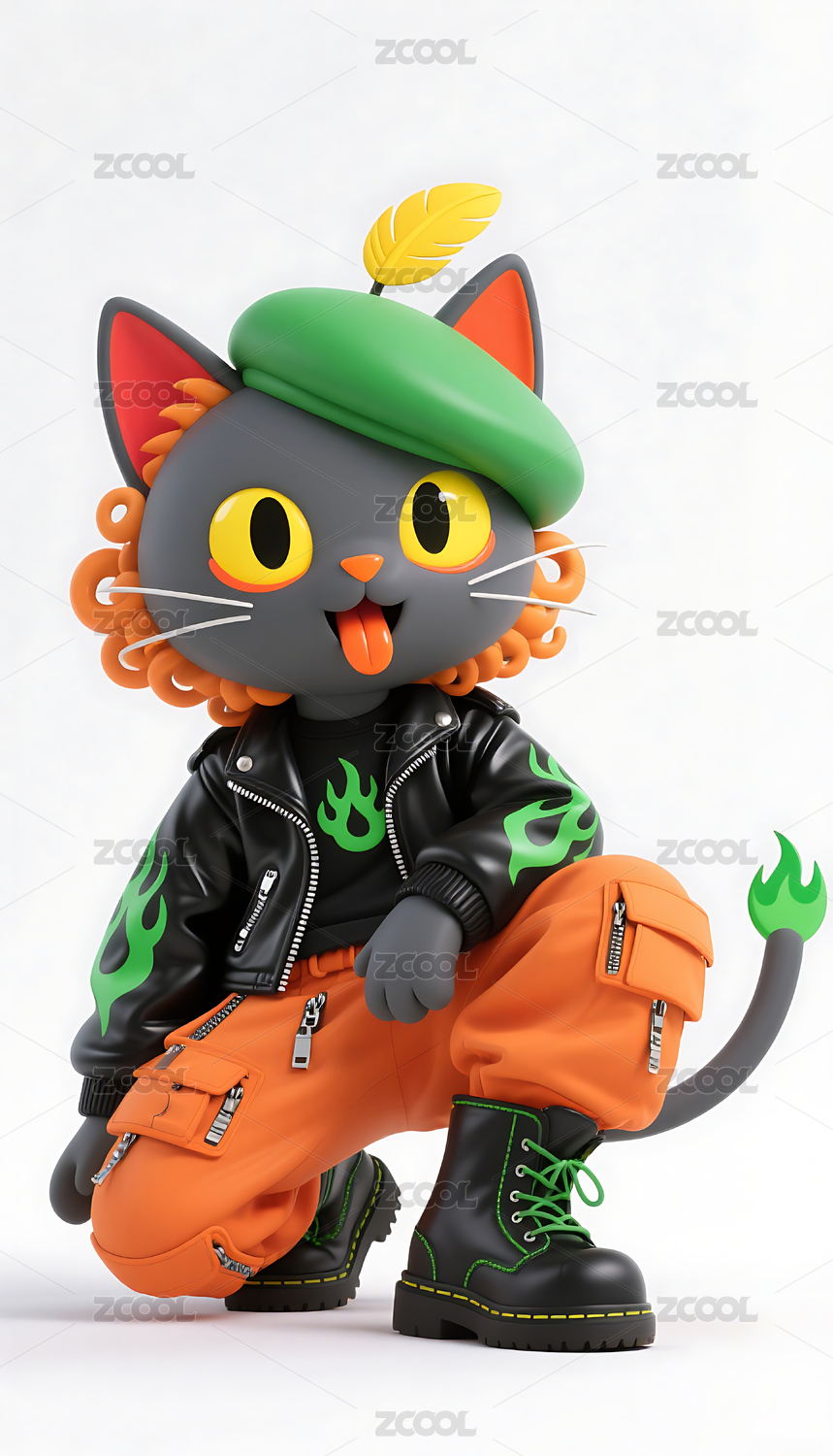带刀白底荧光色忍者猫3D卡通素材插画元素