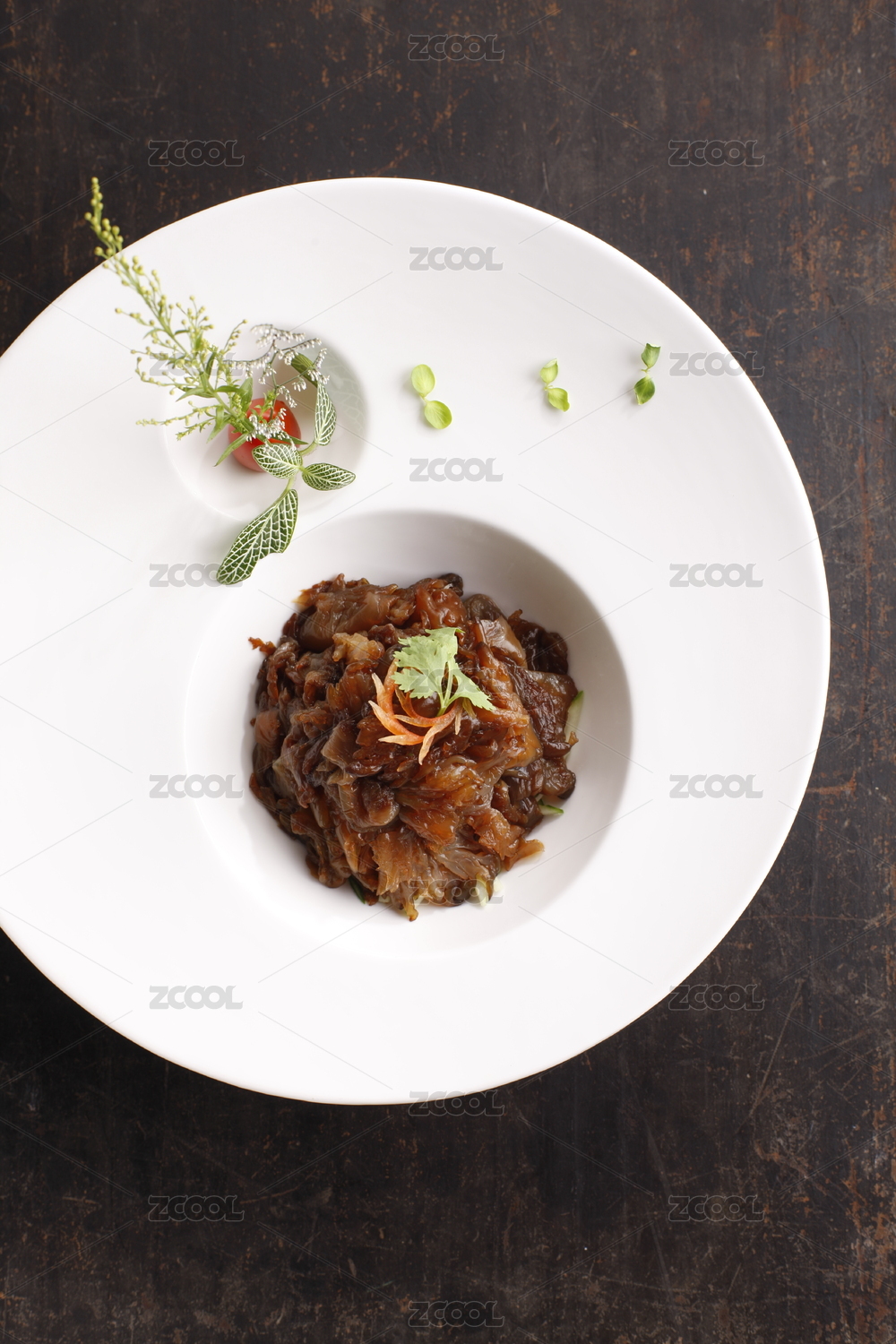 桌面上的盘子里的美味可口的凉拌木耳丝
