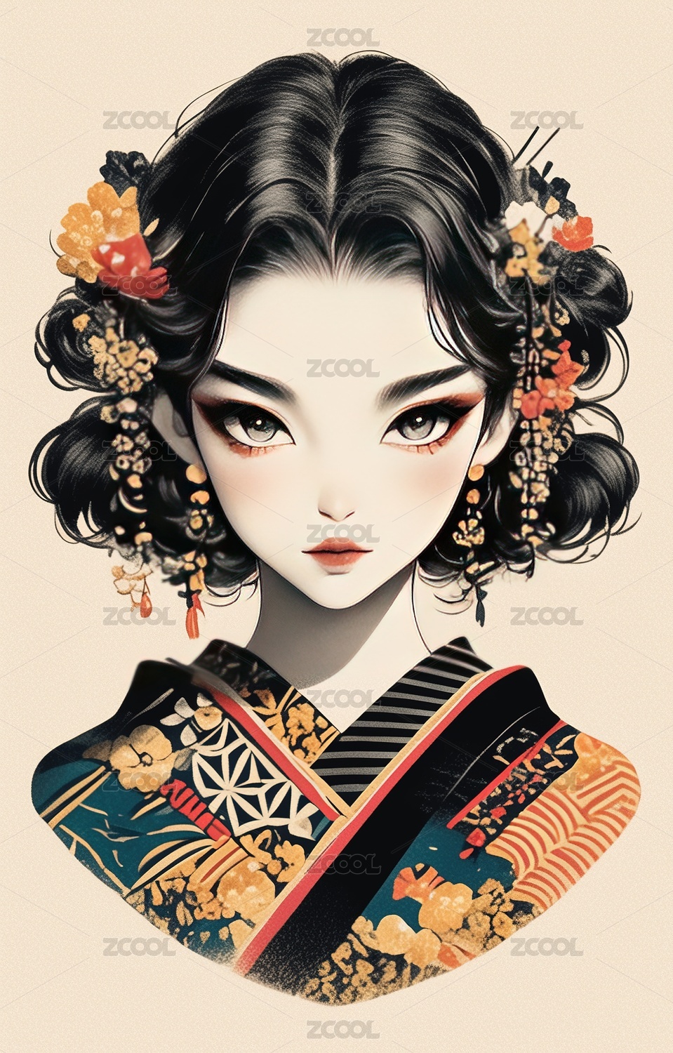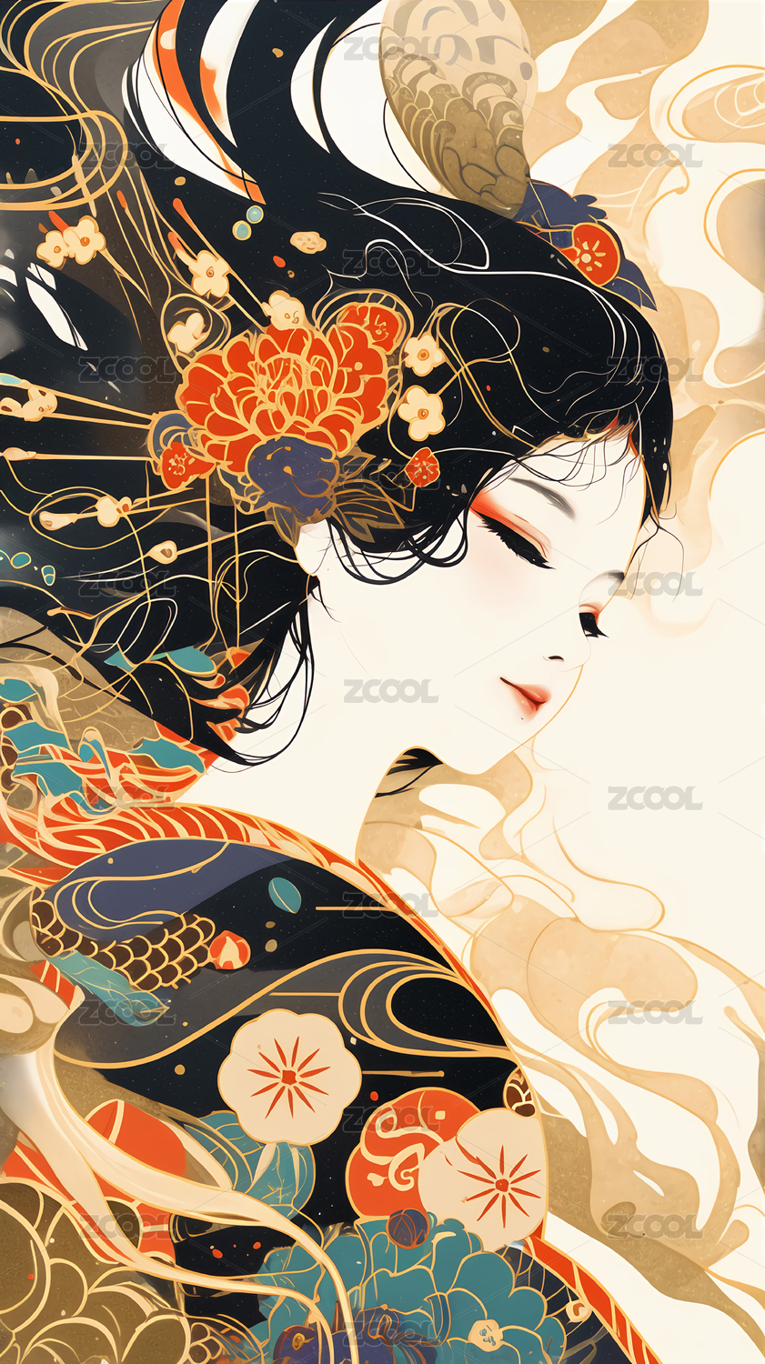 日式浮世绘风格 和服女人