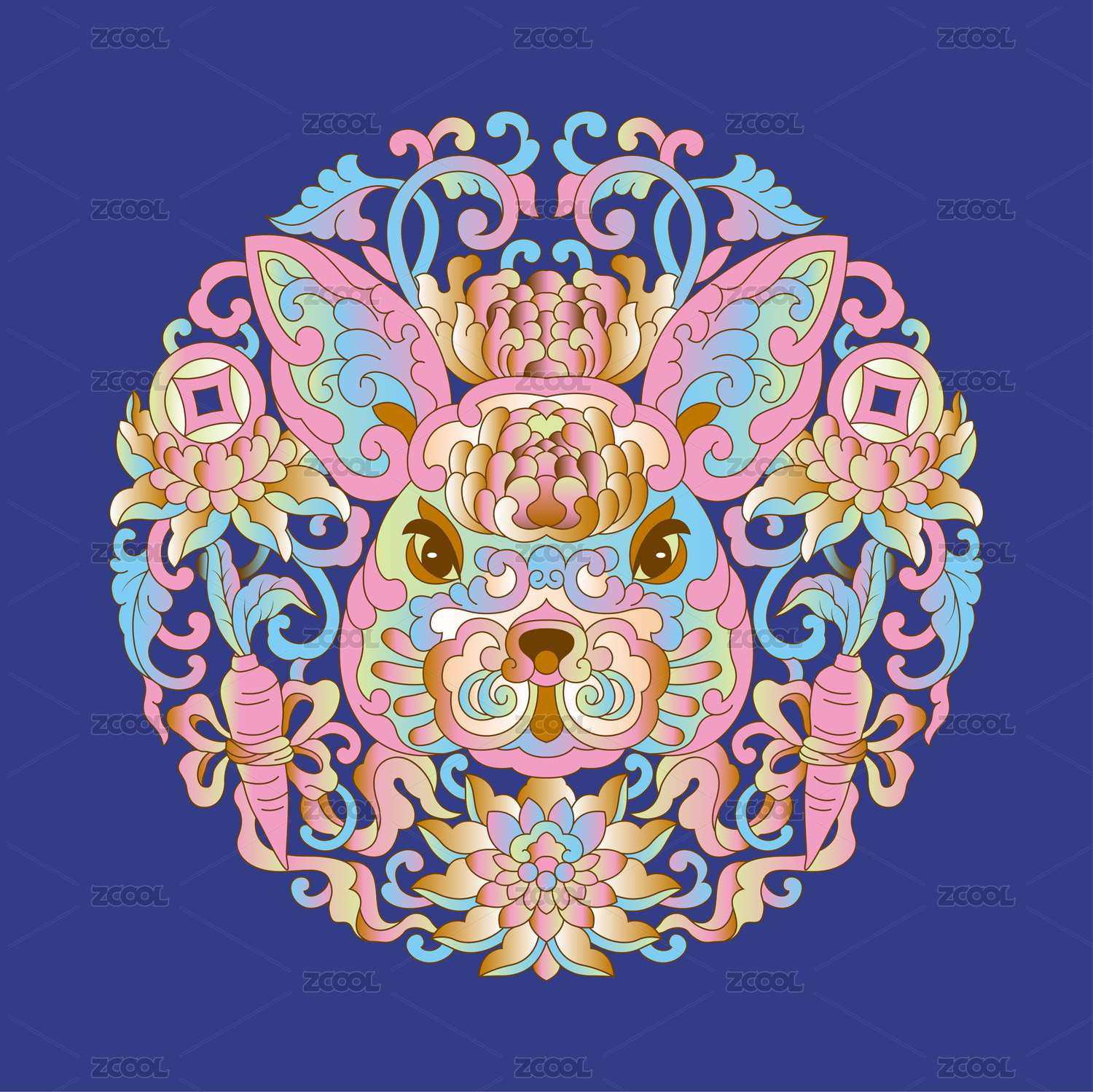十二生肖羊潮流中国风纹样印花图案矢量插画