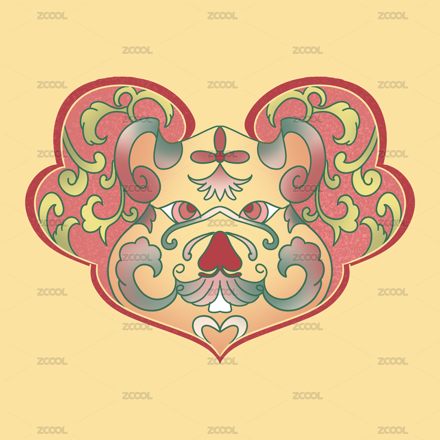 中式纹样龙凤纹艺术心形金色复古纹饰
