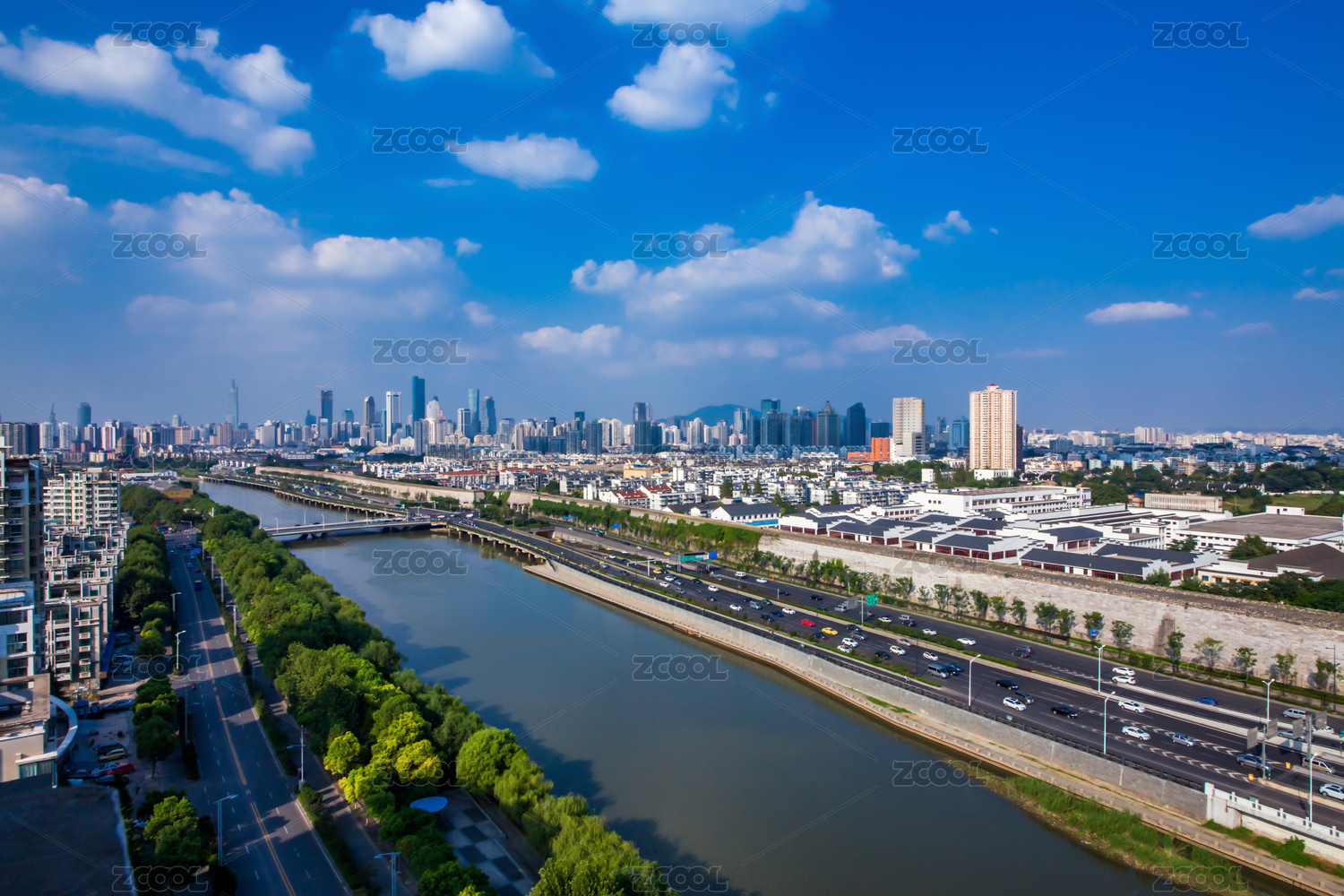 江苏无锡市城市地标建筑市中心蓝天白云风光