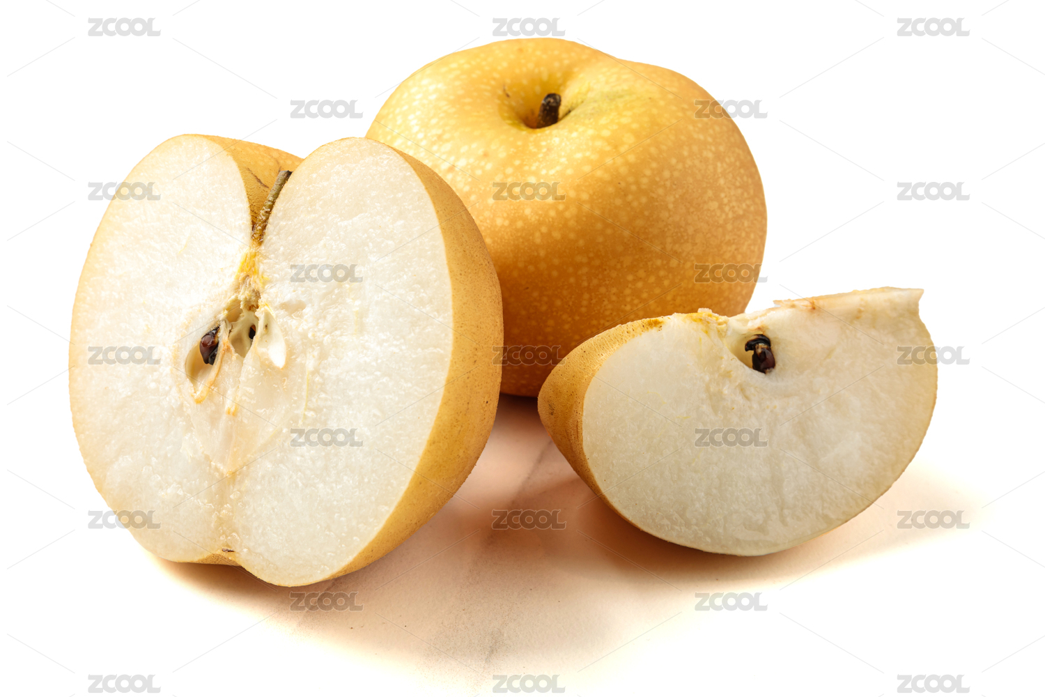黄金梨切开半个果肉白底