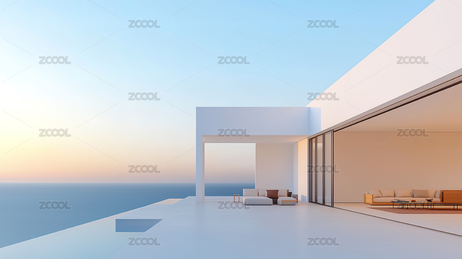极简海景度假别墅酒店主题背景