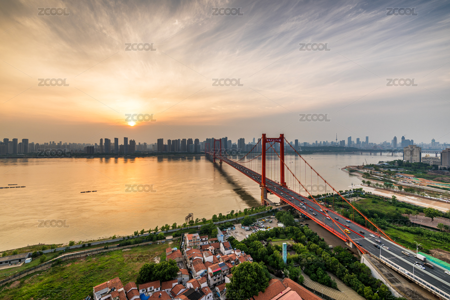 中国武汉鹦鹉洲长江大桥傍晚时光