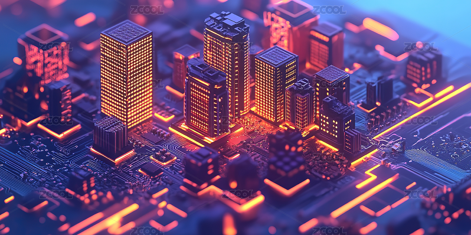 未来城市与电路板融合景象