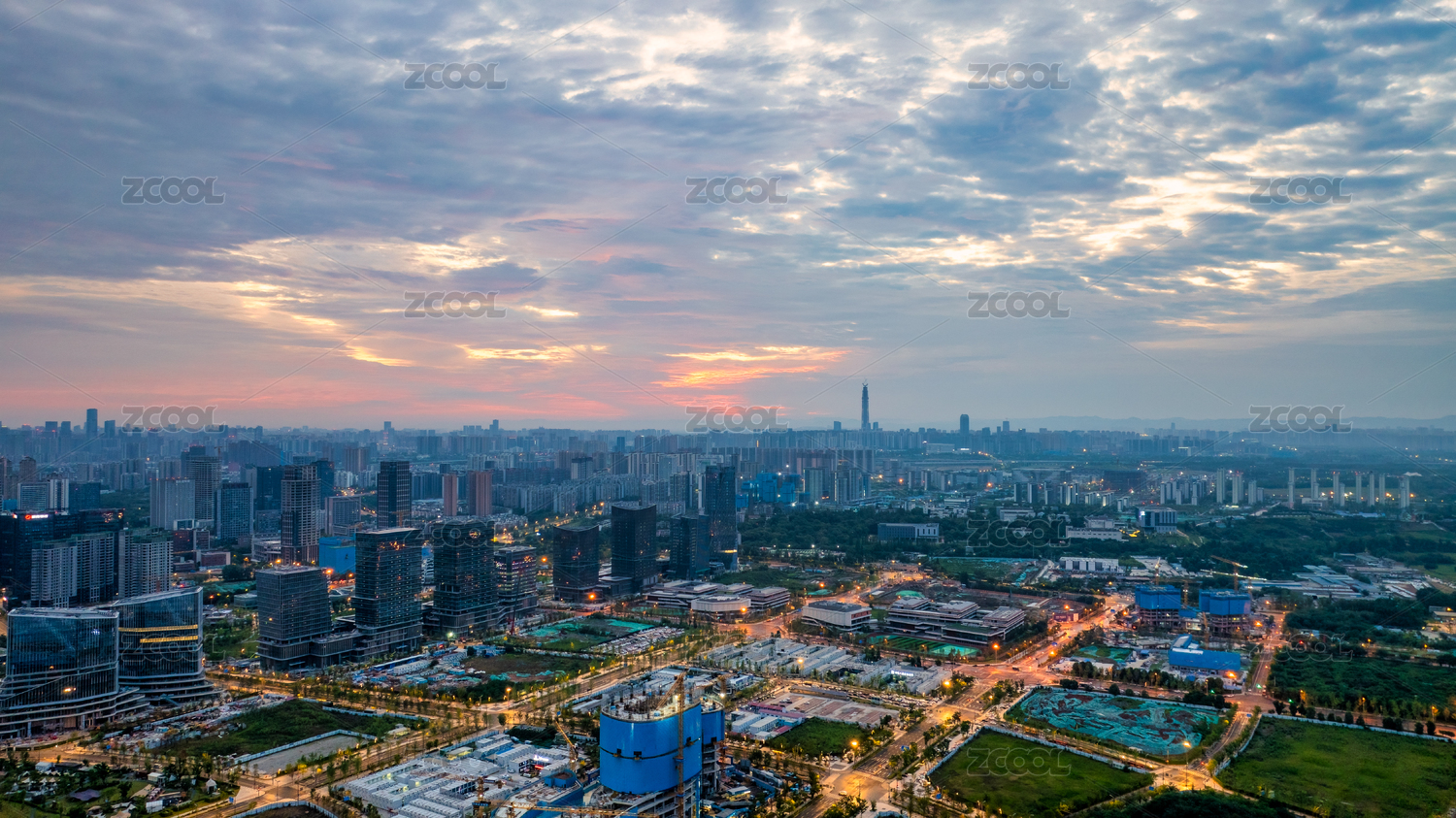 成都锦江区,金融城东,城市建设,道路,灯光,清晨,天空,成都灯光,路灯,建筑工地