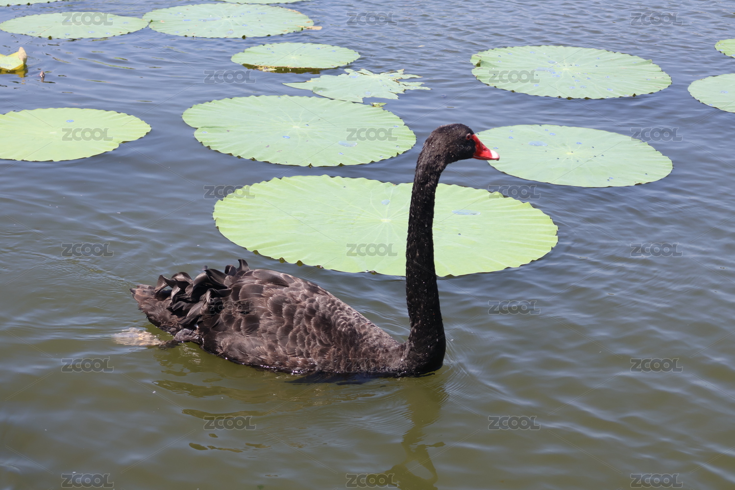 成都文化公园荷塘的黑天鹅
