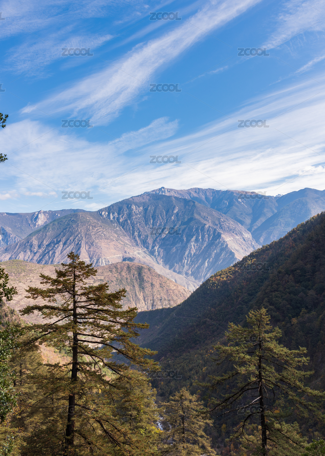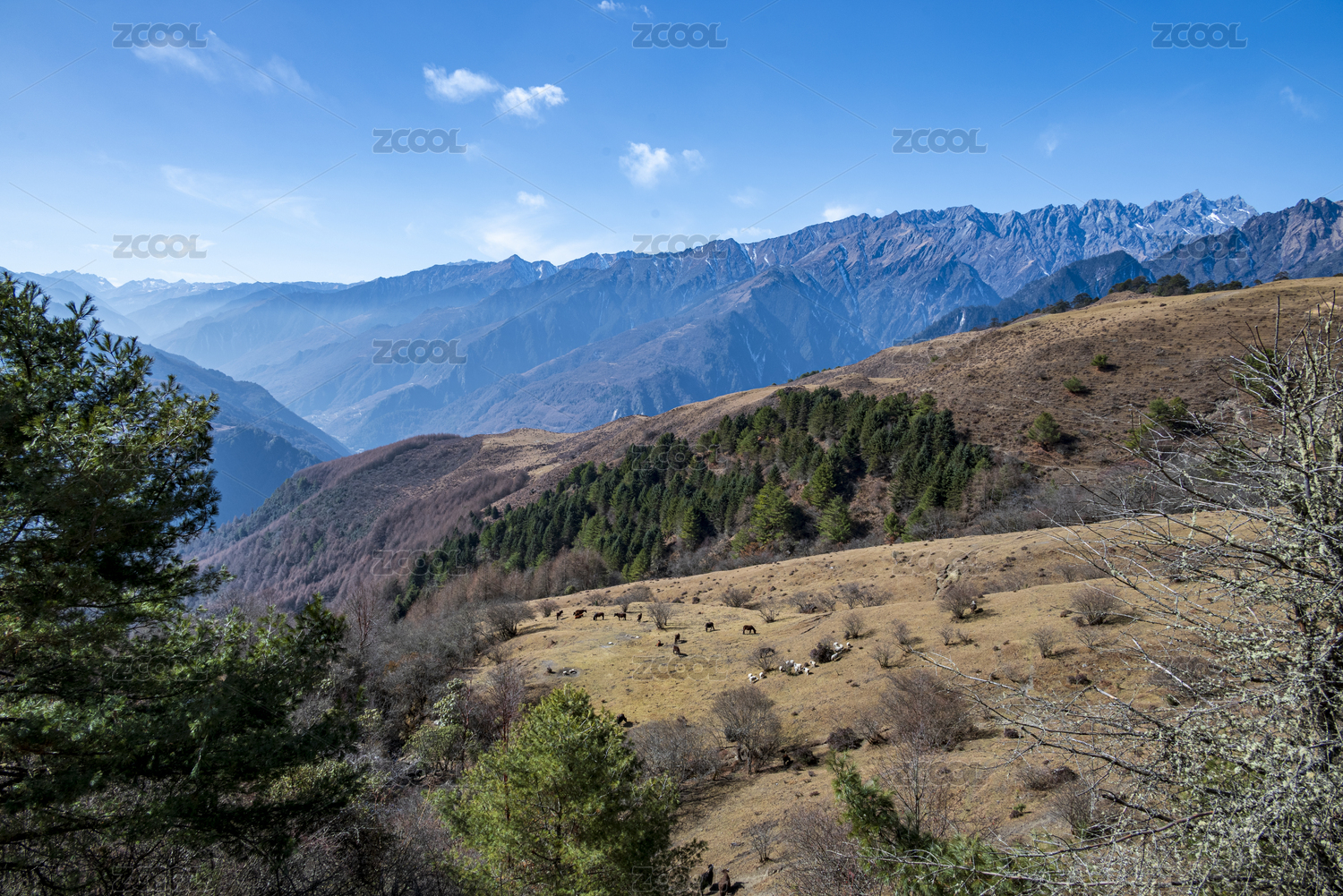中国四川省阿坝州老君沟风景区蓝天白云下美丽的高原地貌