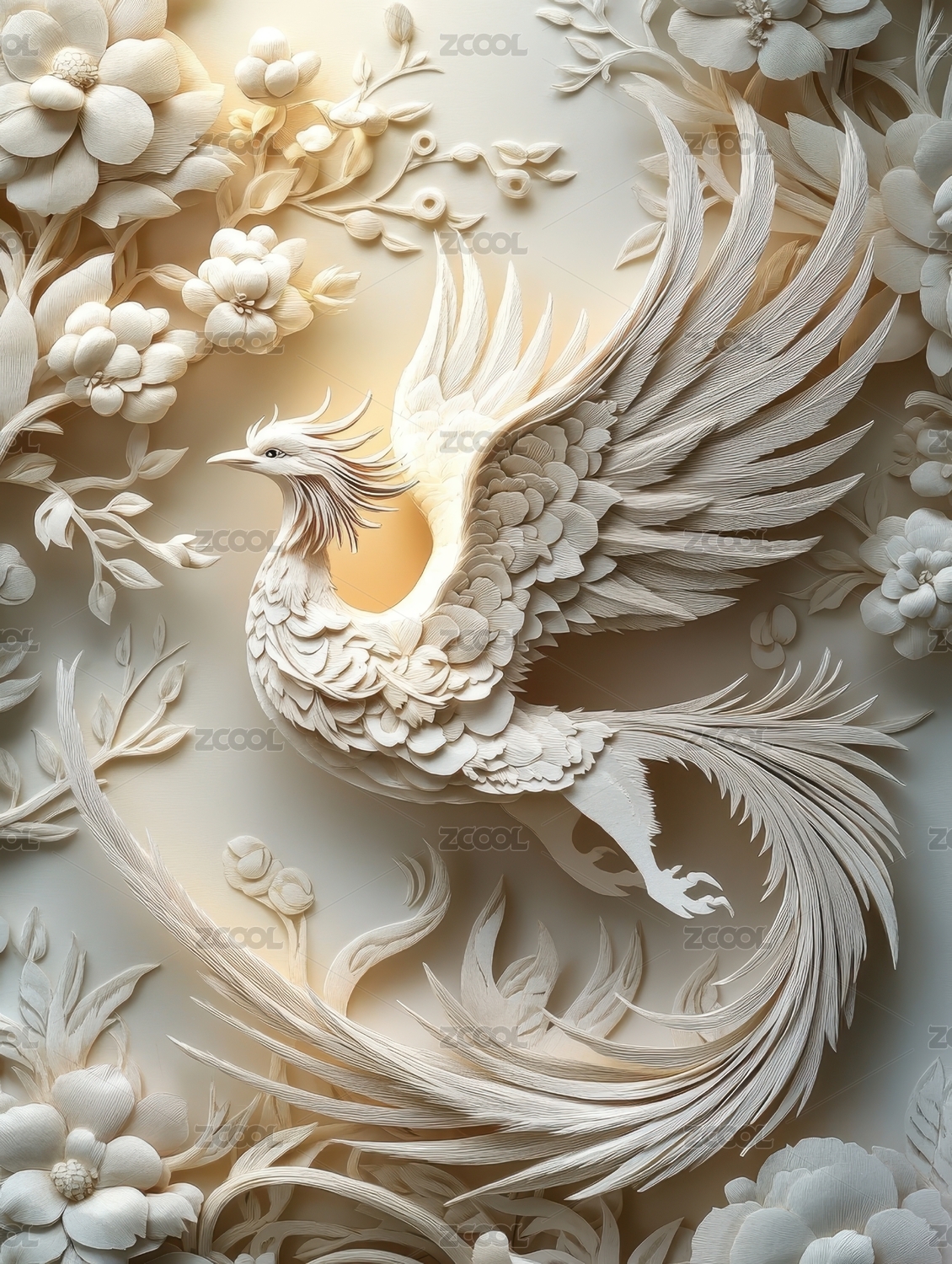 白凤凰纸雕艺术品