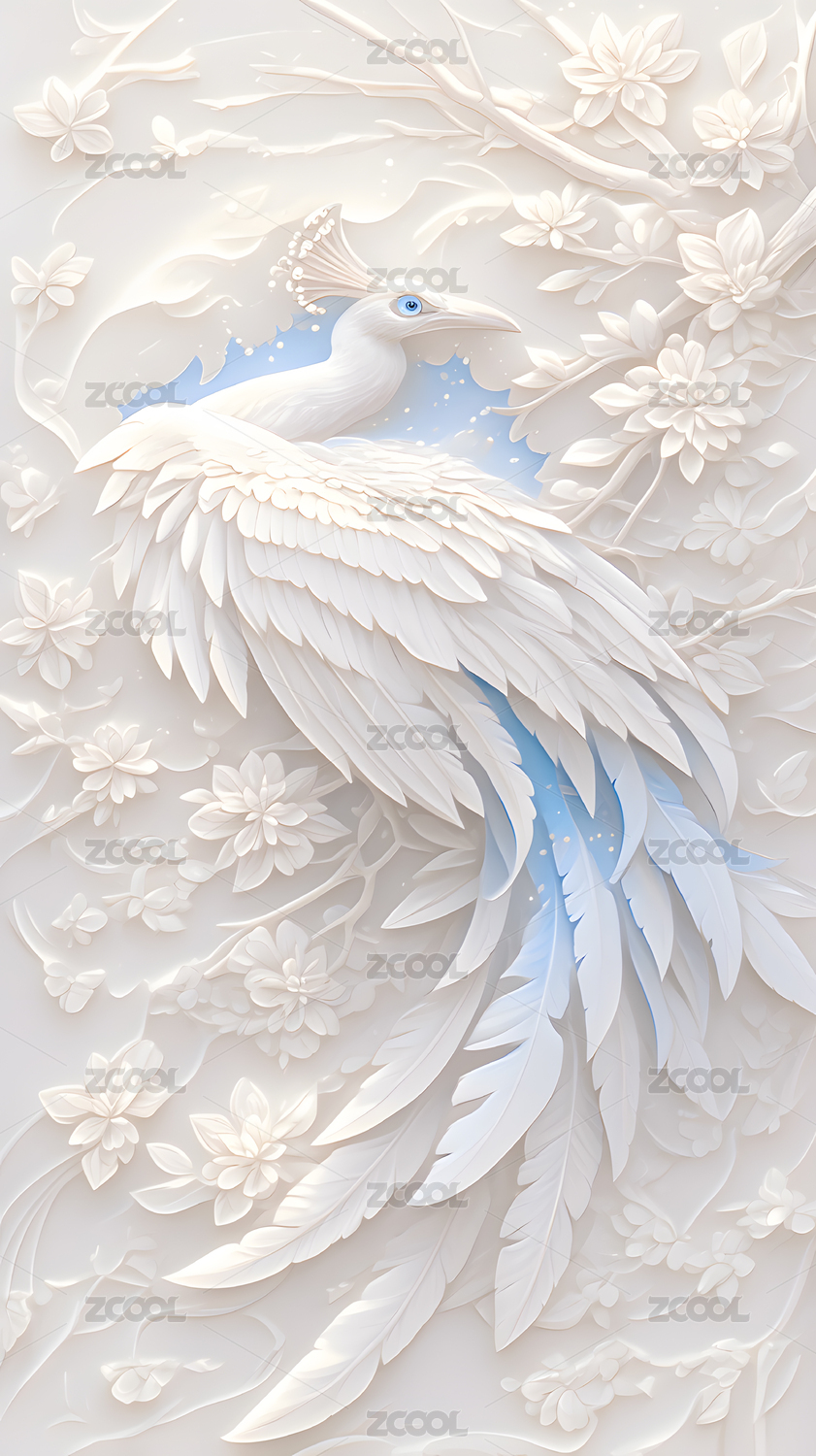 中国风立体白色孔雀插画