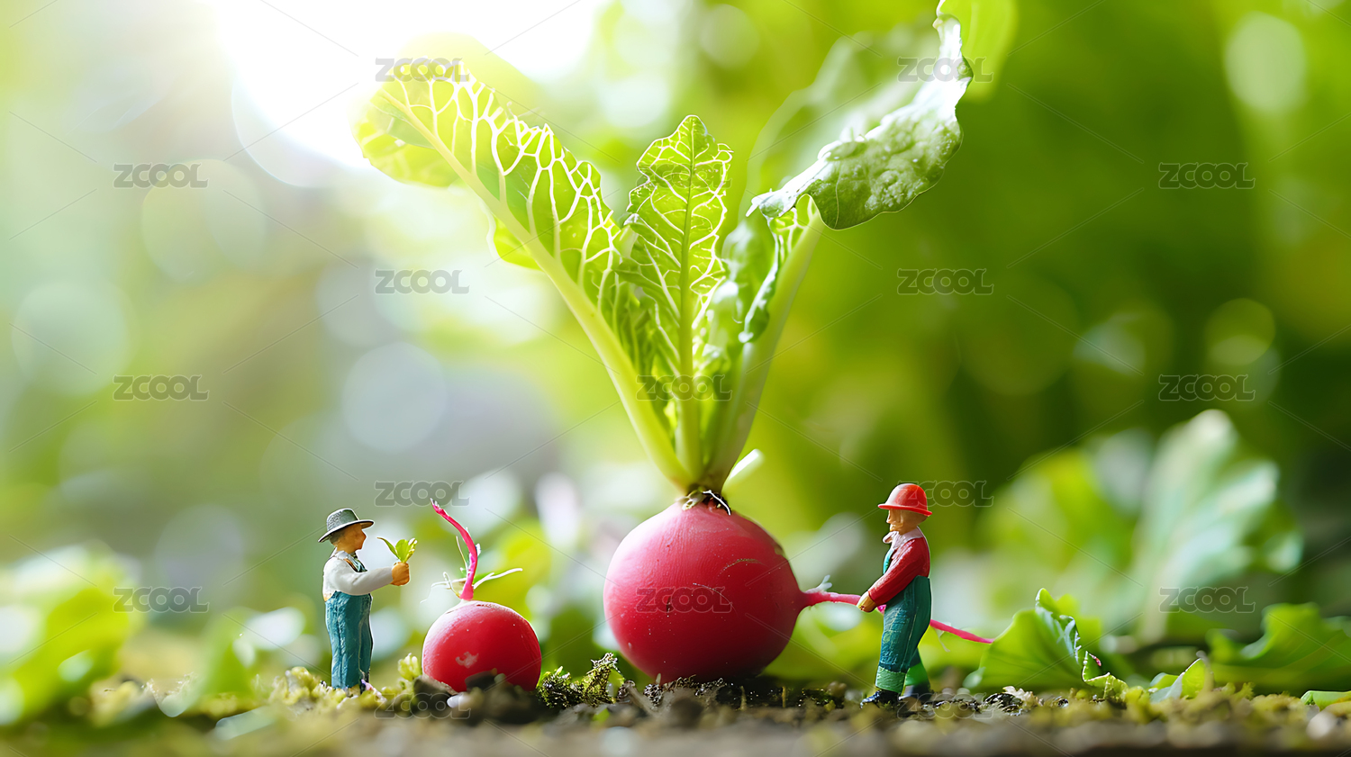 迷你微观世界一群小人偶正在种植农作物