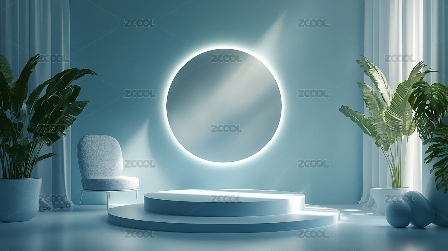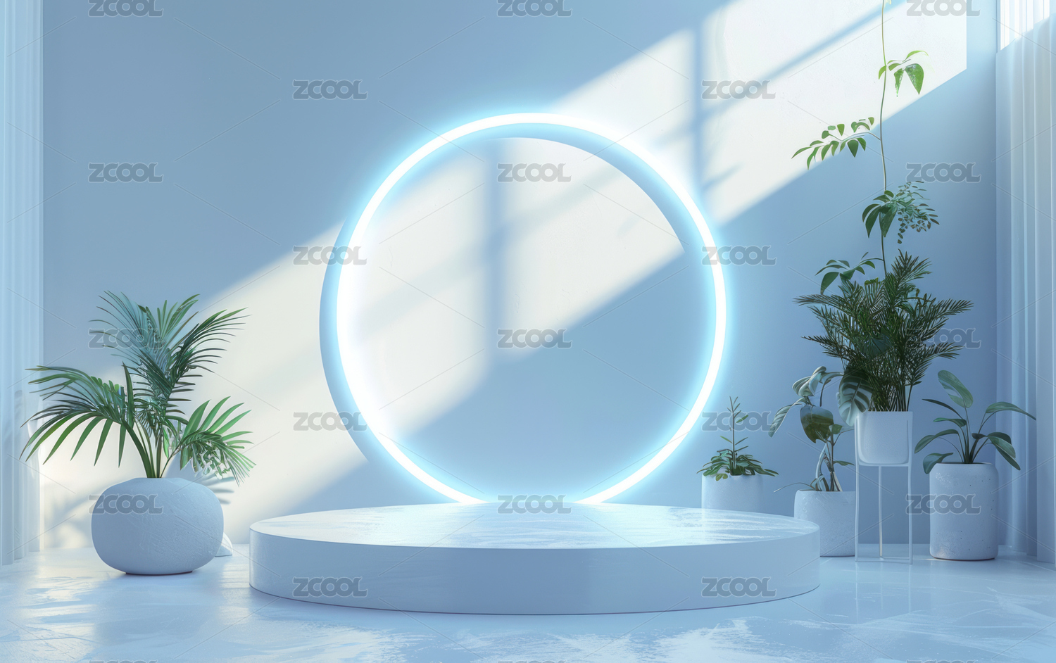 未来主义,科技感,现代,蓝色,灯光,圆形,简约,装饰,自然,绿色