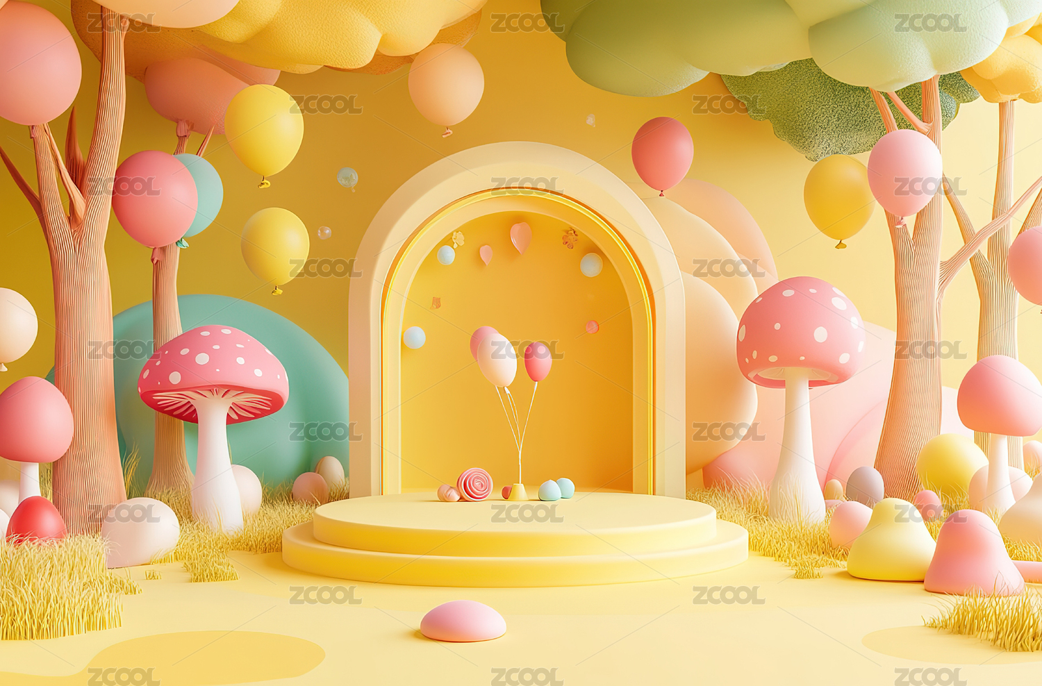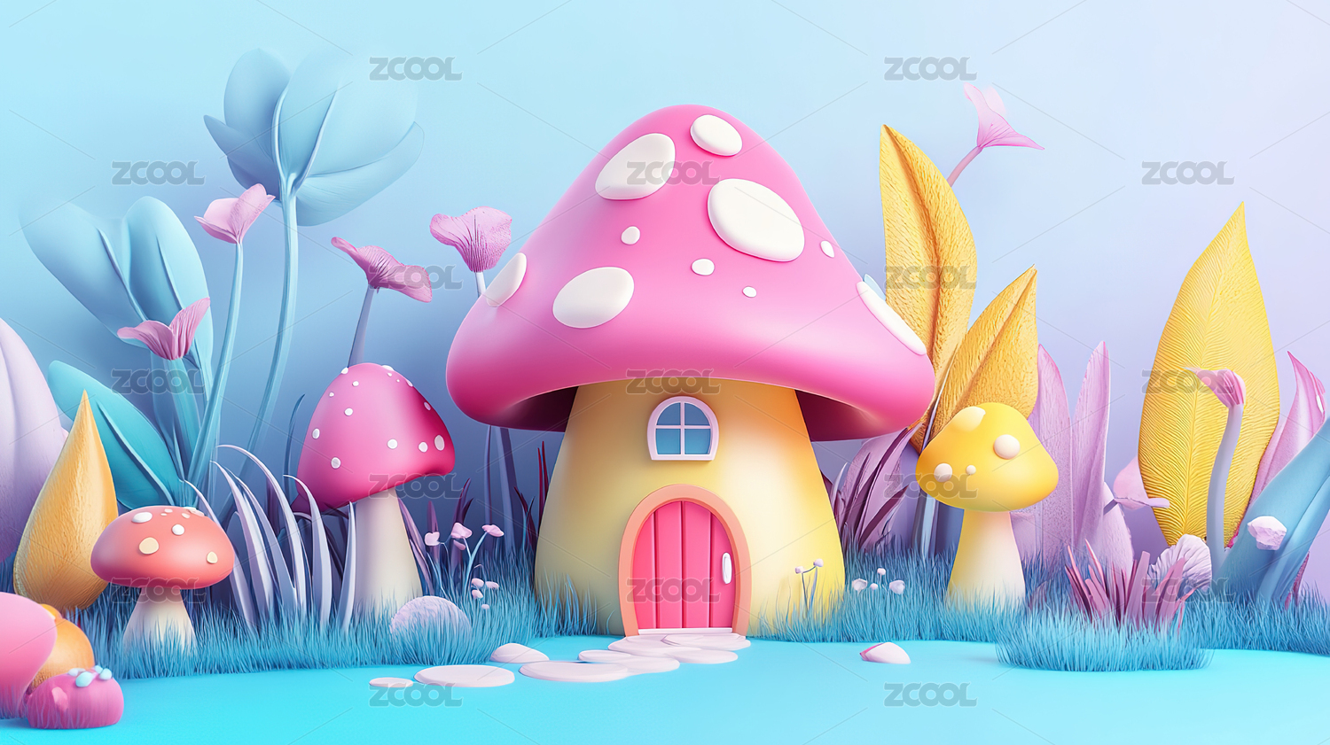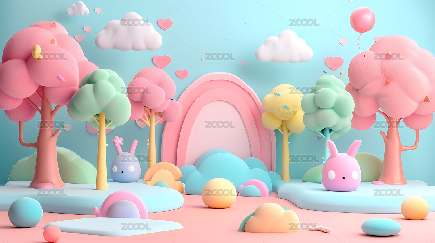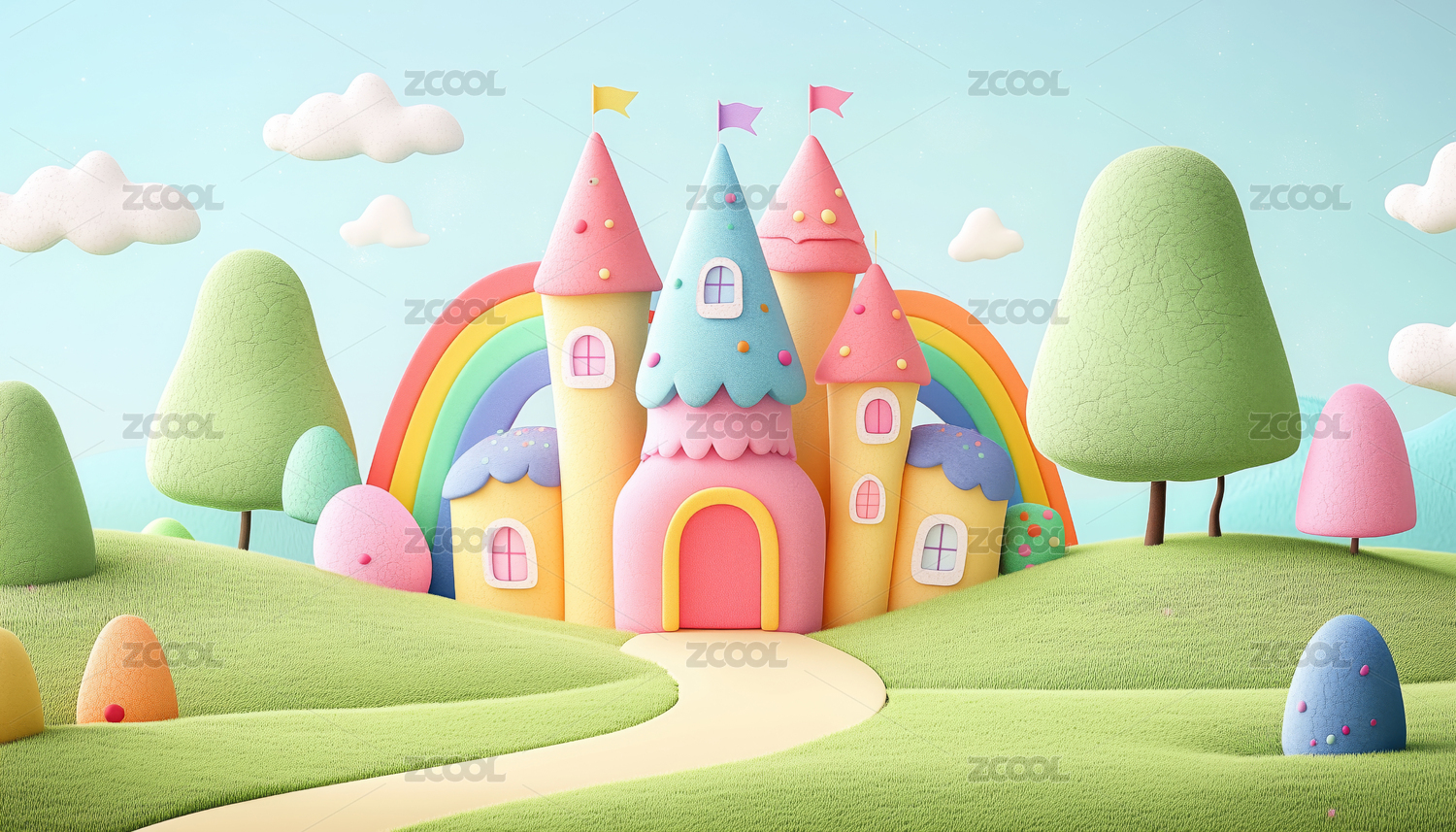 3D矢量彩色卡通背景故事书插图可爱梦幻