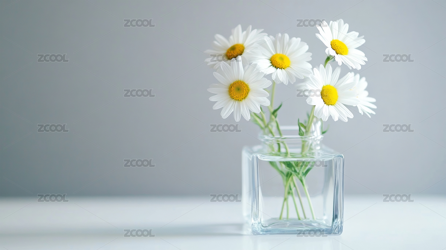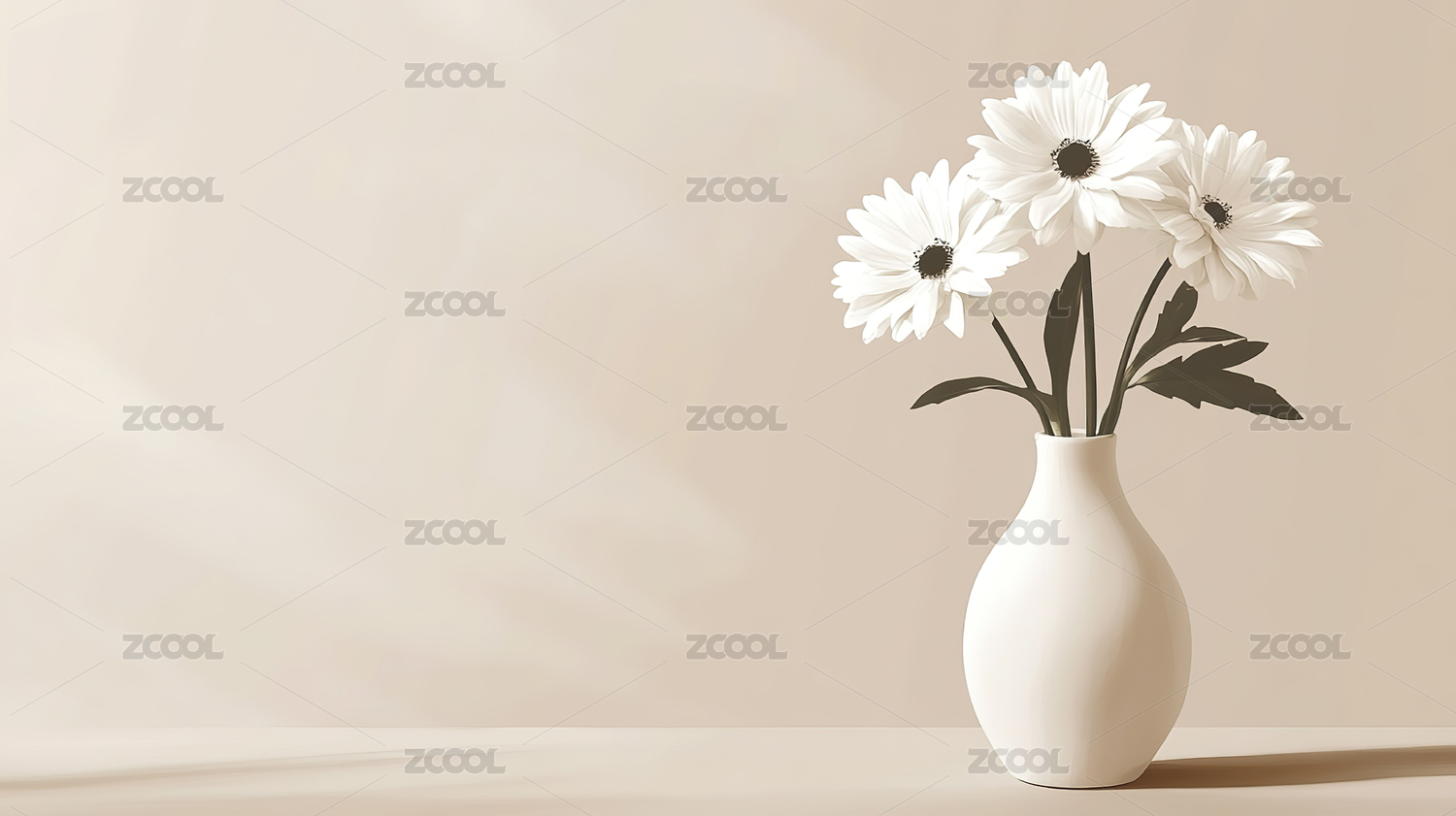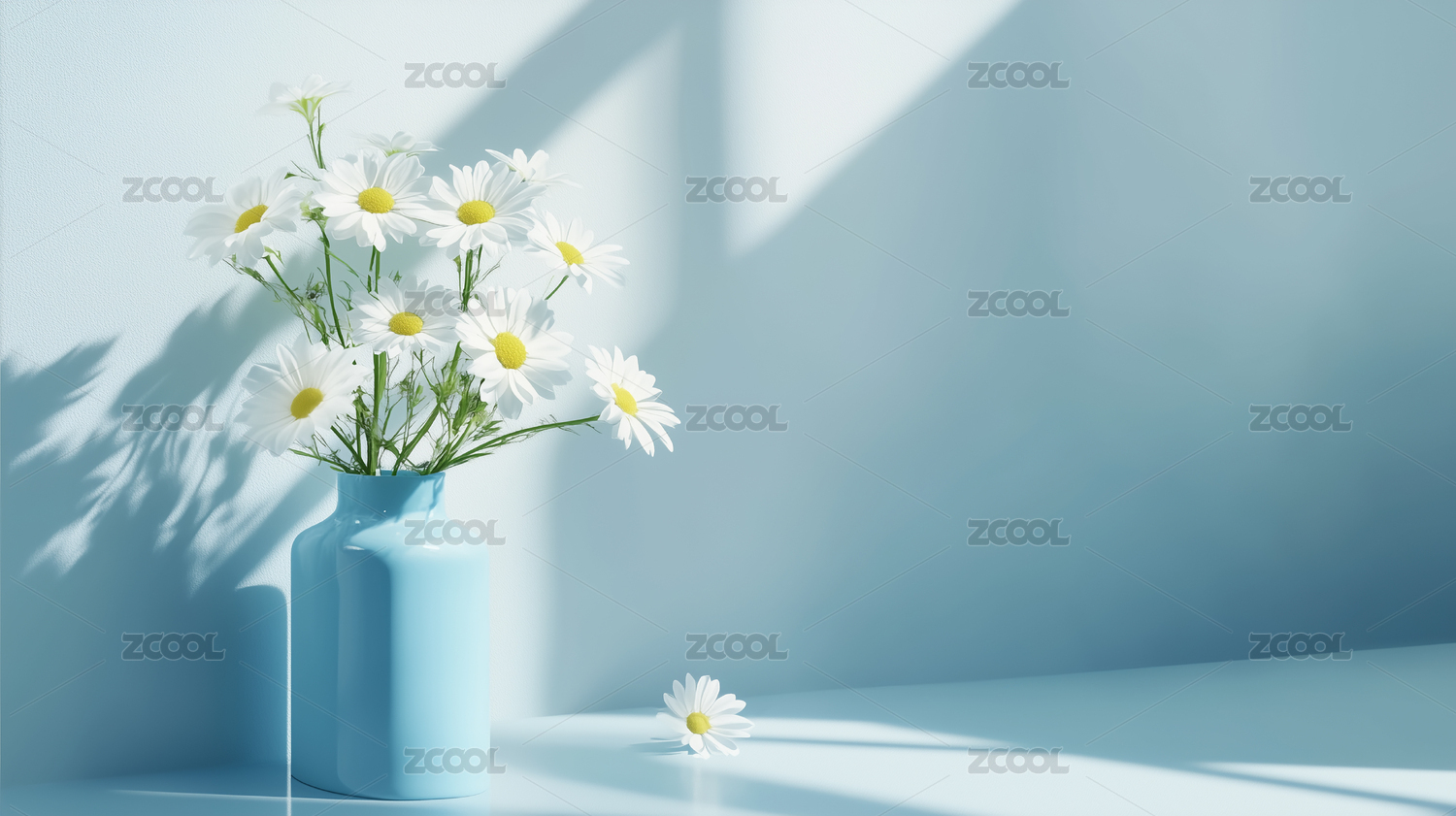 蓝色背景下桌上花瓶里的花朵特写镜头