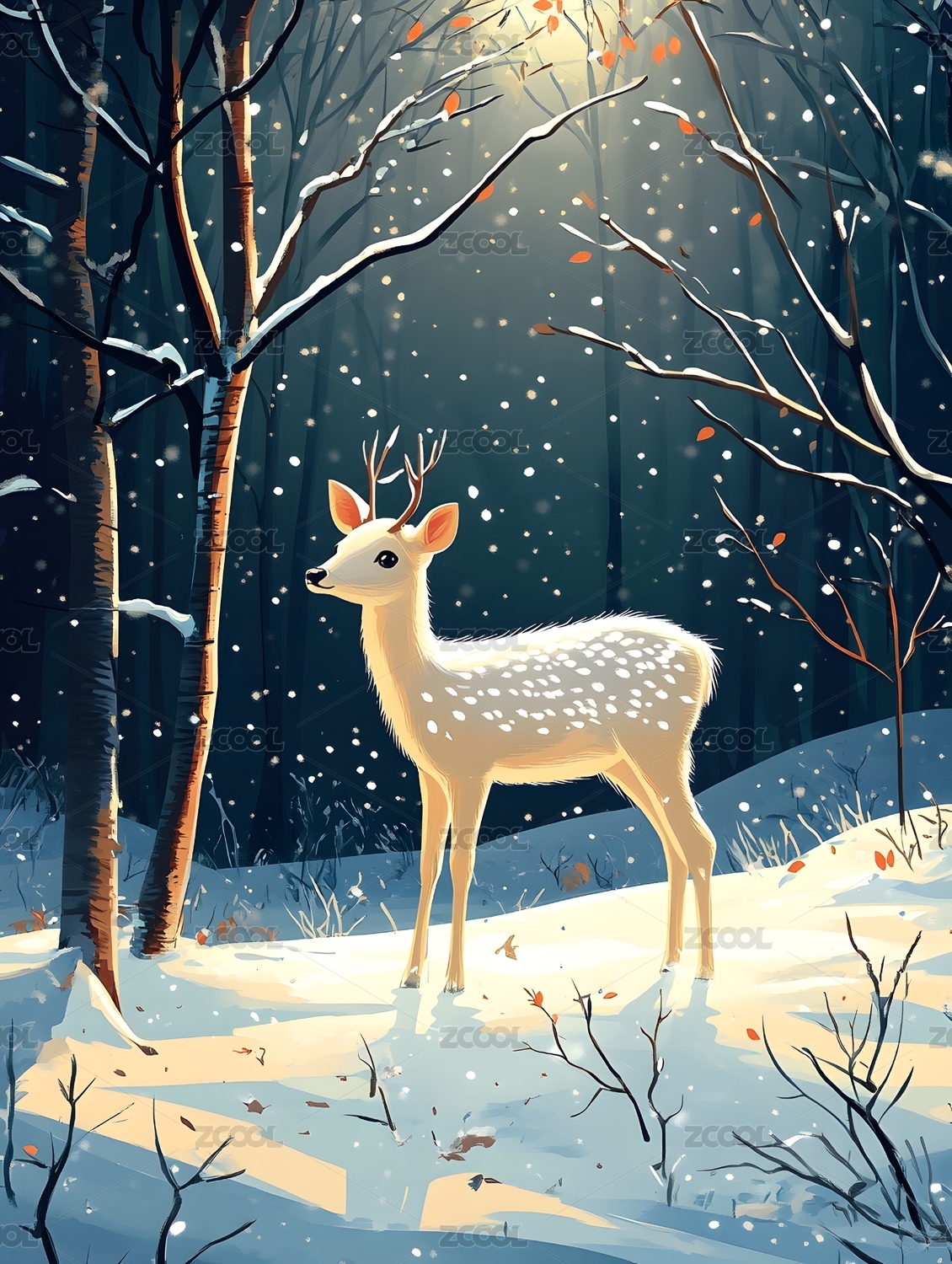 冬天,雪,鹿科,树林,野外动物,动物,户外,动物主题,野生动物,雪花