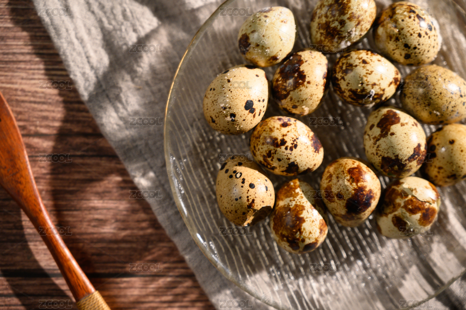 桌面上的盘子里的美味可口的盐焗鹌鹑蛋