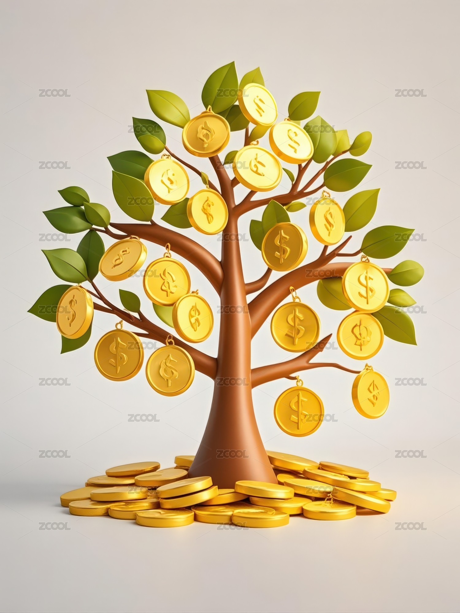 创意金钱树与金币堆叠