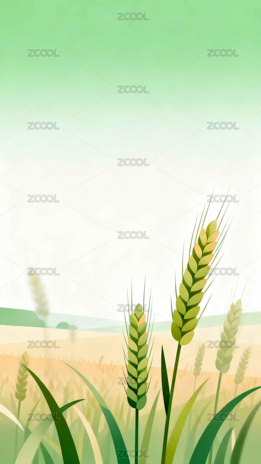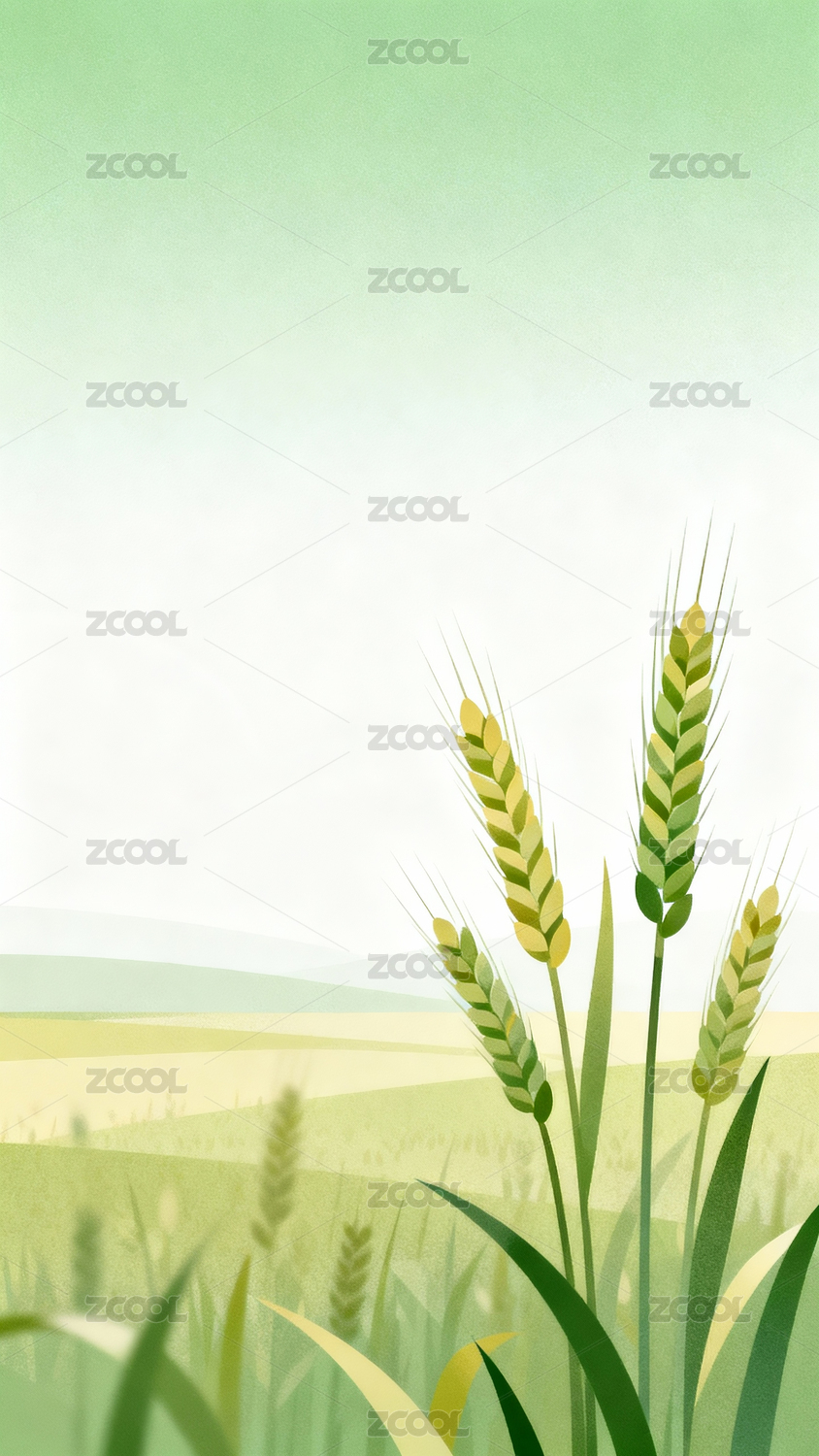 绿野麦穗风景插画