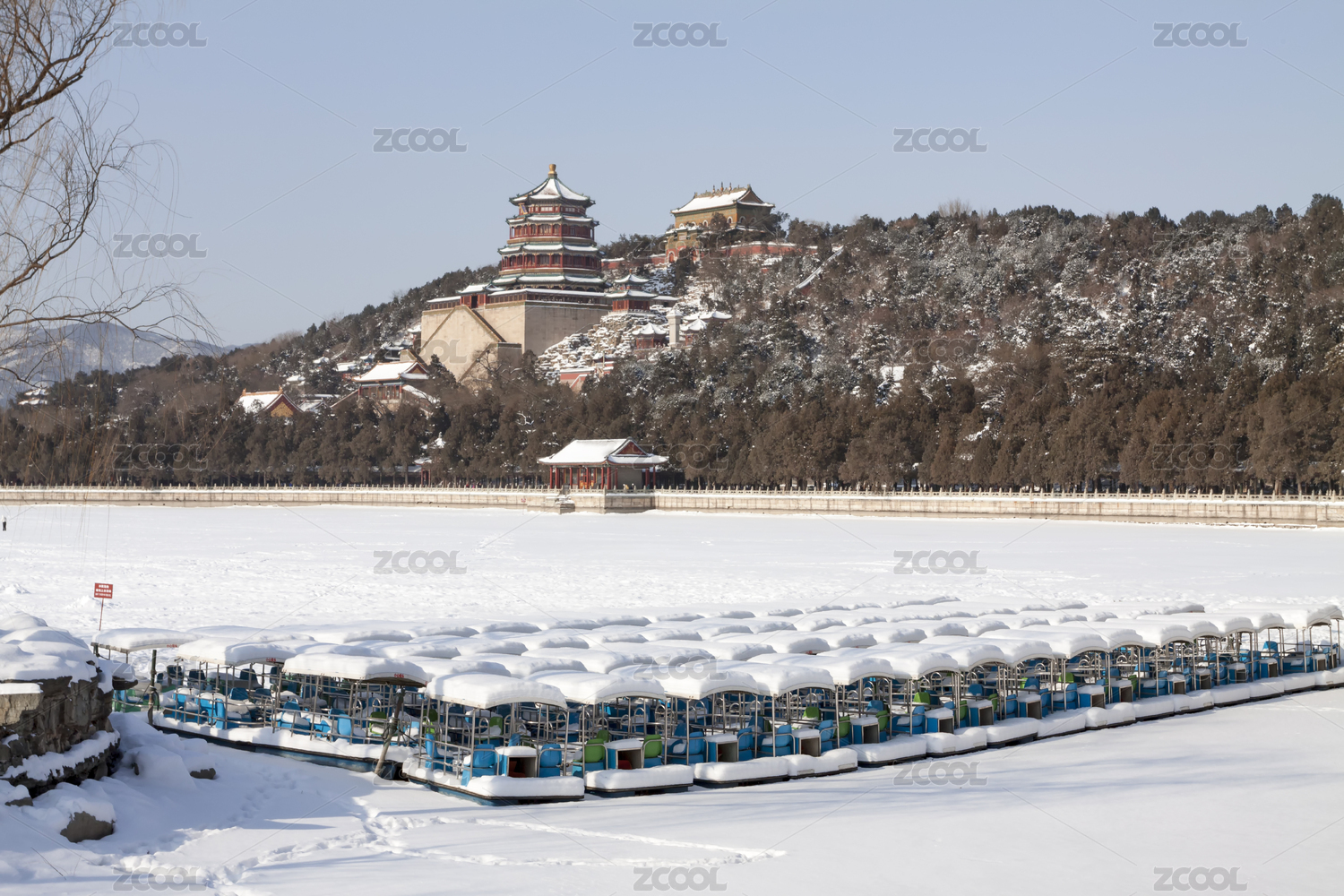 北京市颐和园昆明湖边万寿山佛香阁冬季风光